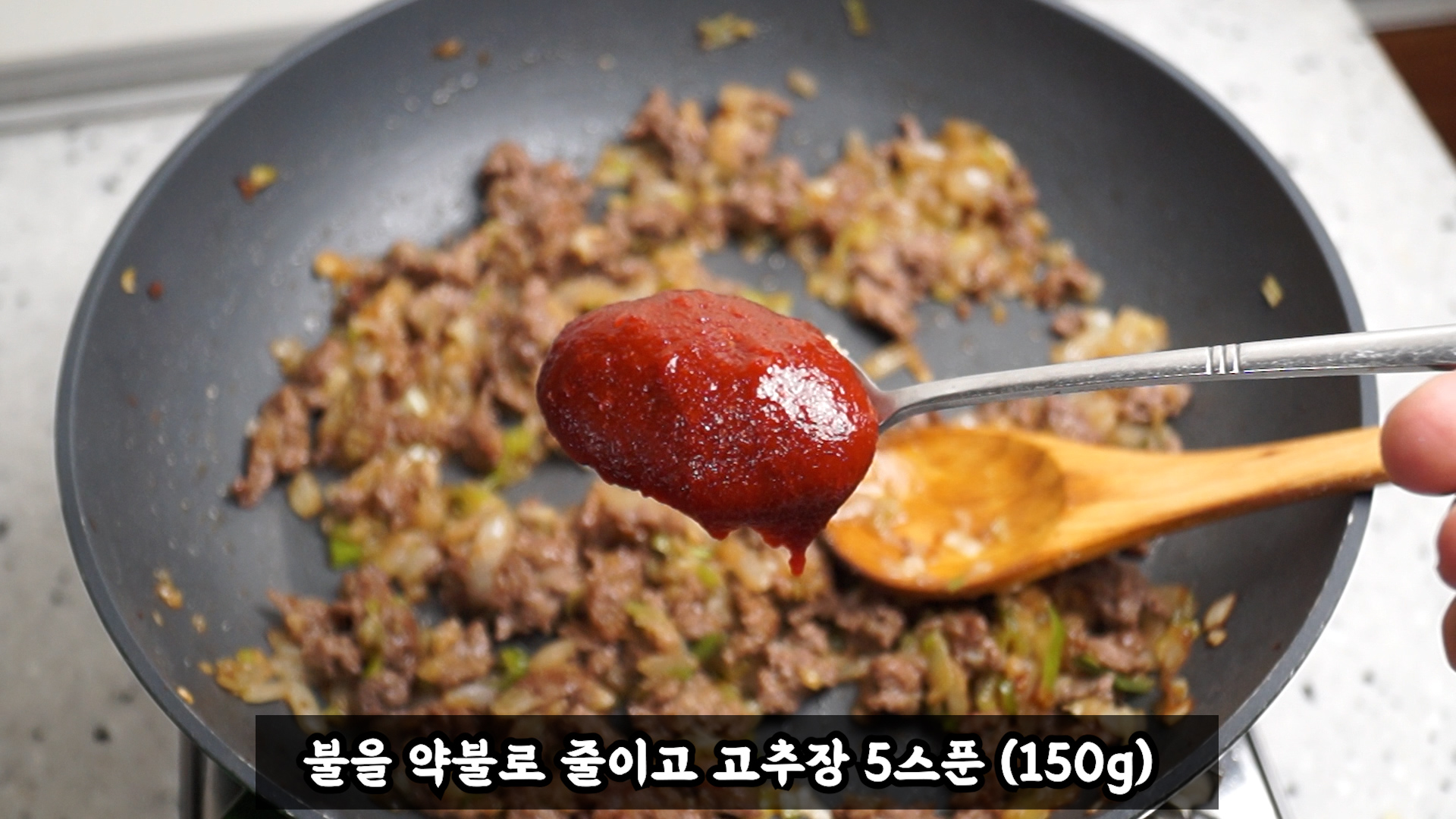 12. 불을 약불로 줄이고 고추장을 넣어주세요.