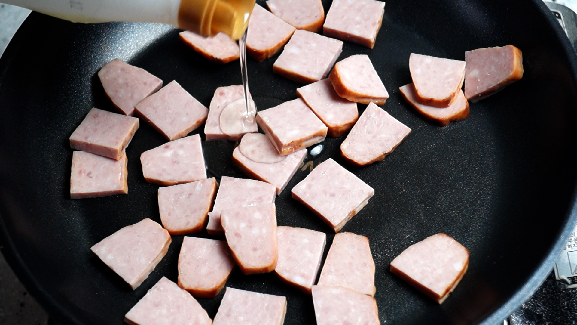 10. 팬에 소세지를 넣고 식용유 1스푼을 부어주세요.