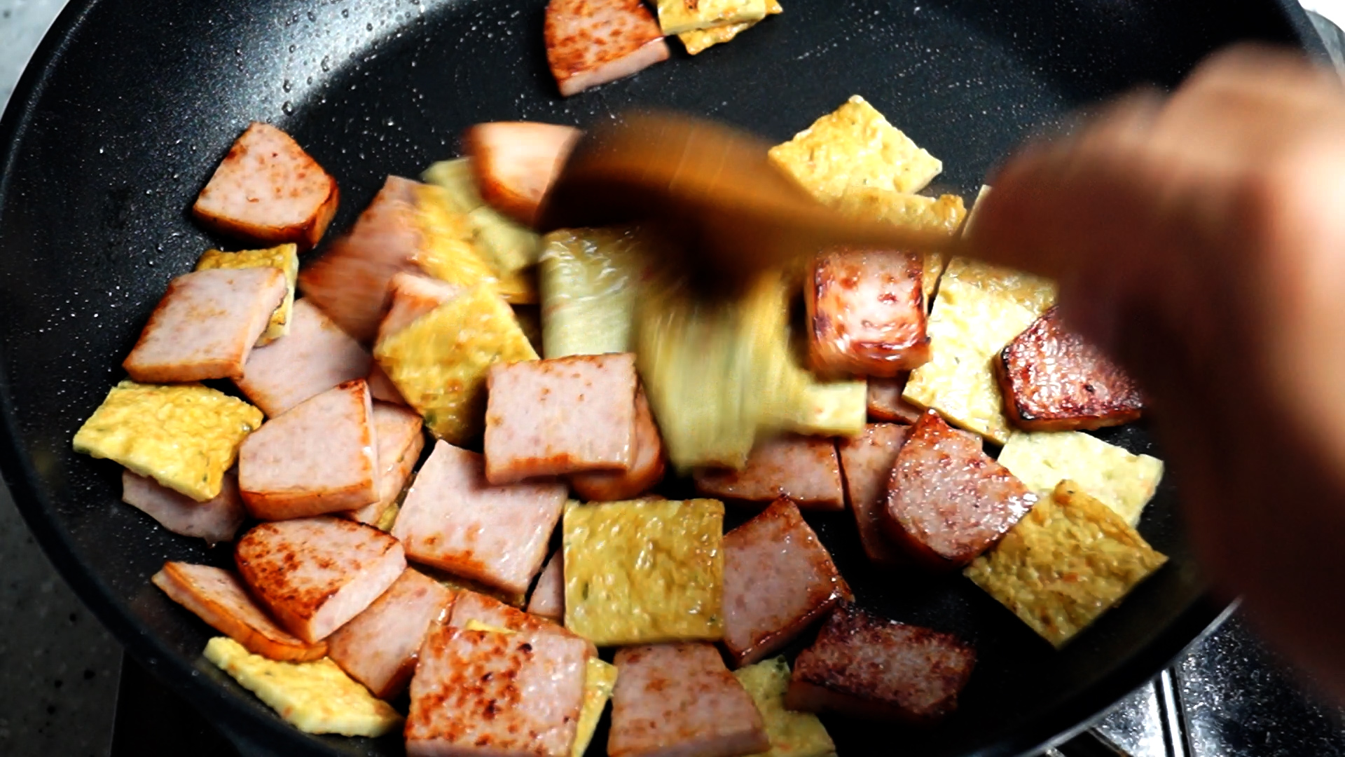 7. 햄은 두께 0.5cm 가로세로는 2~3cm 크기로 썰어주고 개봉했던거는 1개 먹어보고 상태를 파악한 다음 사용하세요.
