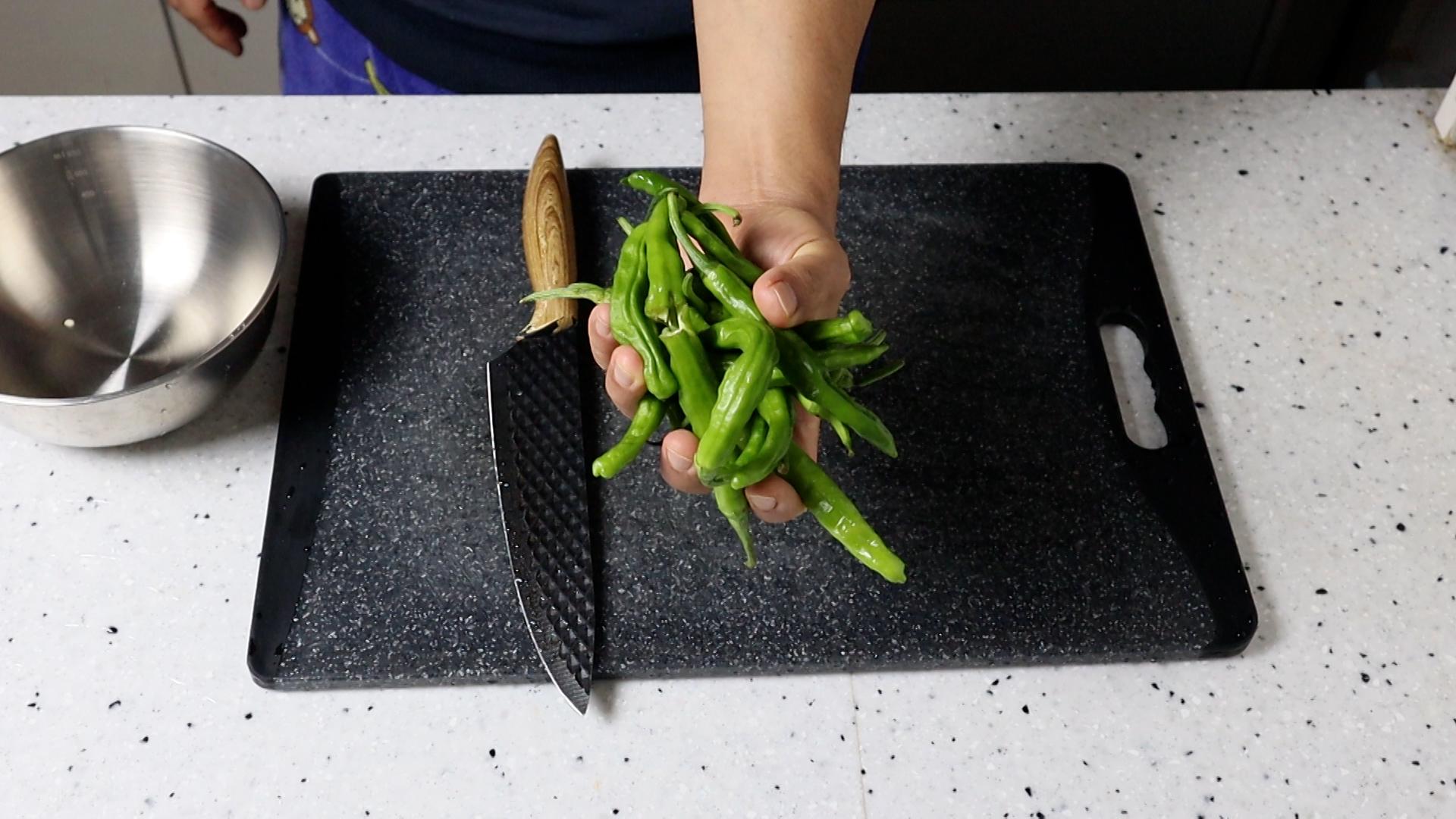 1. 꽈리고추 100g 을 준비하는데 저울이 없으시면 17~18개를 준비해주세요.