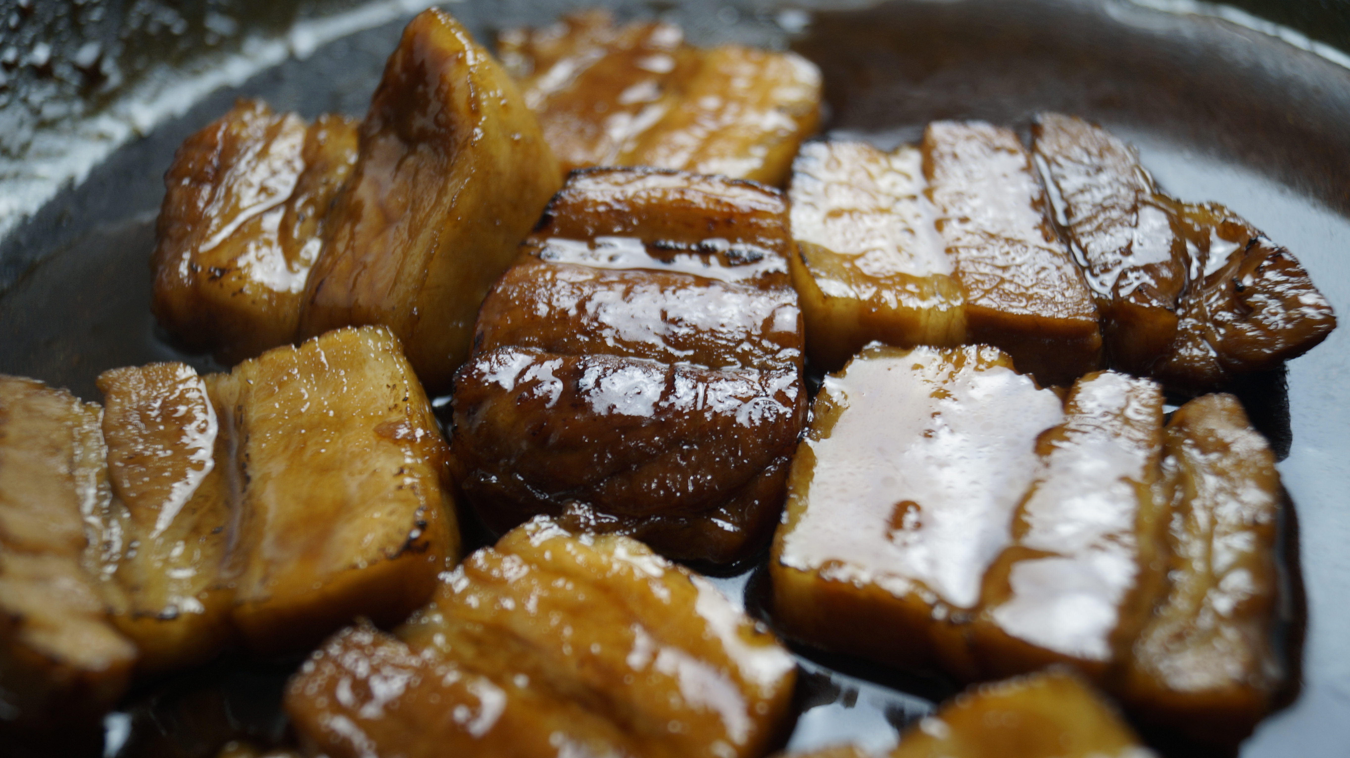 6. 팬을 강불로 달궈소 삼겹살 6면을 모두 구워줄거에요. 먼저 지방 부분을 2분 정도 구운 다음 다른 면들은 1분 정도씩 구워주세요. 이렇게 해주면 졸일때 육즙을 가두는 효과가 생깁니다.