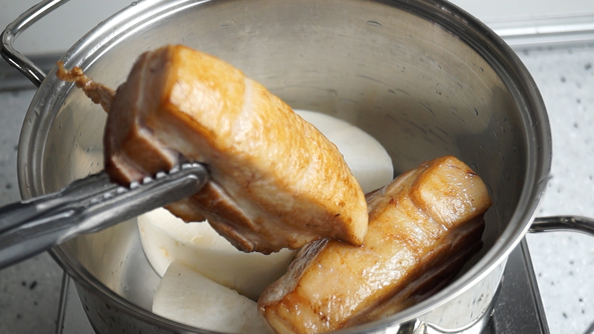 12. 삶은 고기와 무우는 따로 건져내주세요.