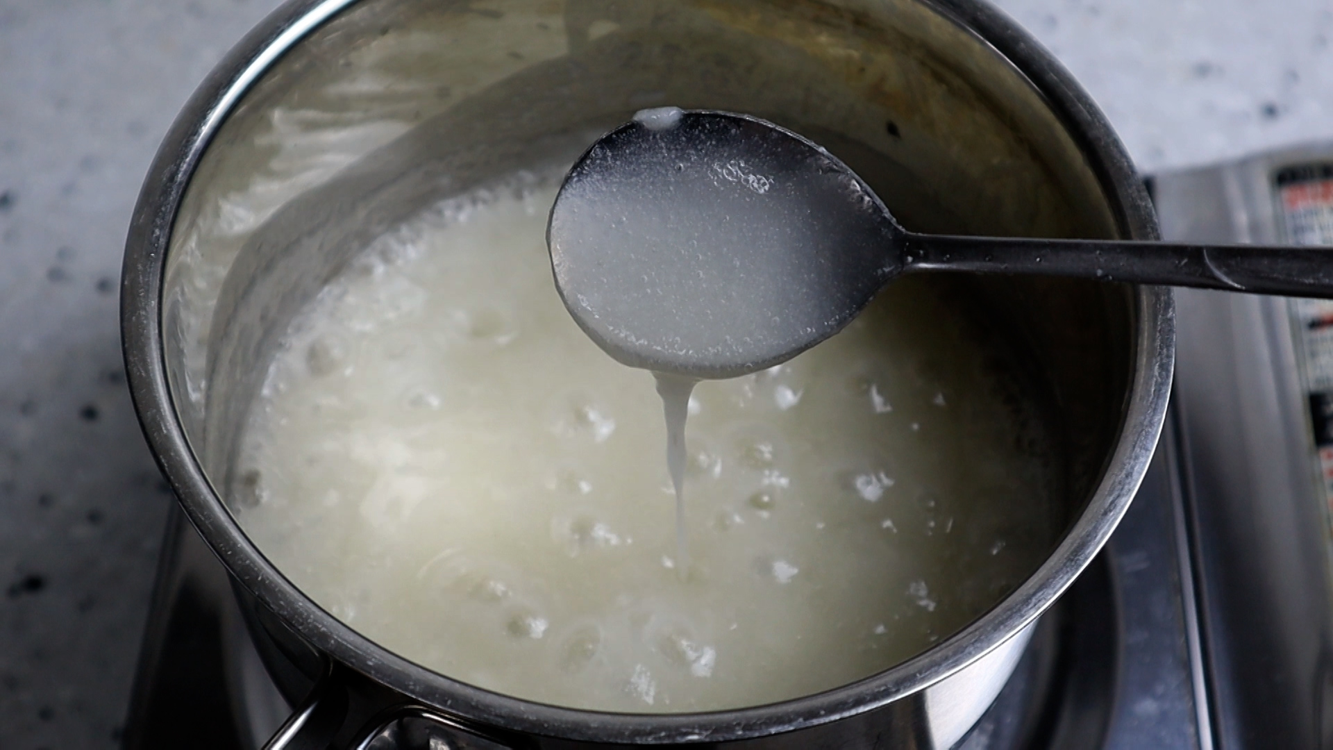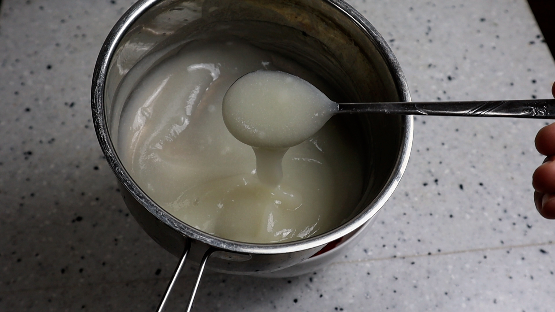 25. 보이시죠! 식으면 이렇게 아까와는 딱봐도 다를 정도로 점도가 생깁니다. 그러니 끓이는데 너무 묽다고 계속 끓이지 않게 주의하세요.
