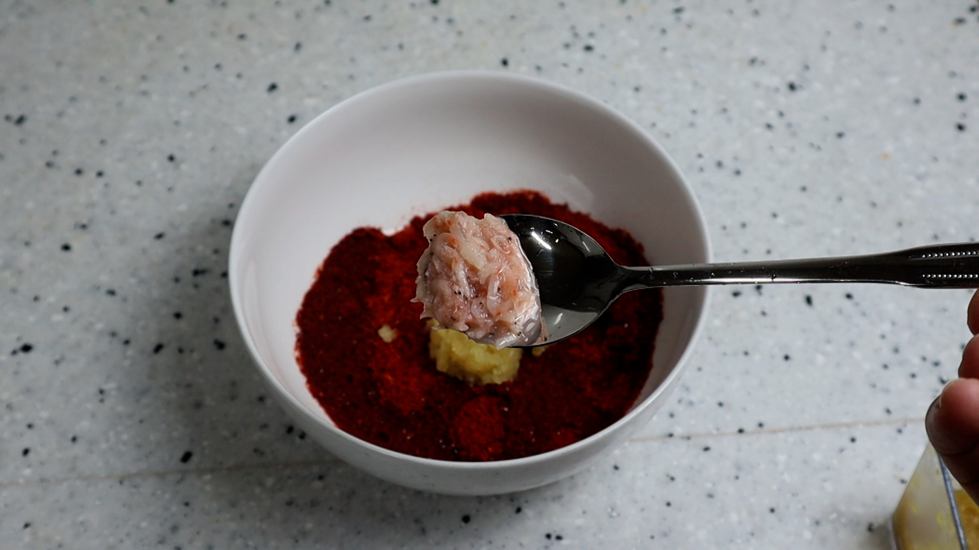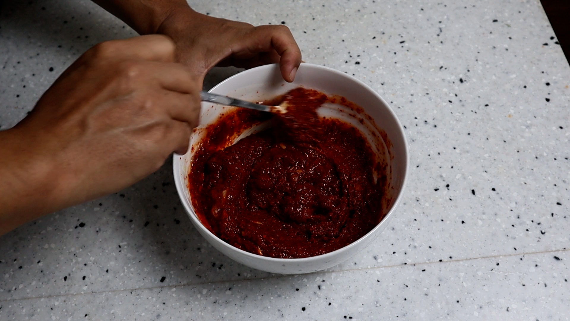 26. 찹쌀풀을 양념에 전부 넣고 골고루 섞어주세요.