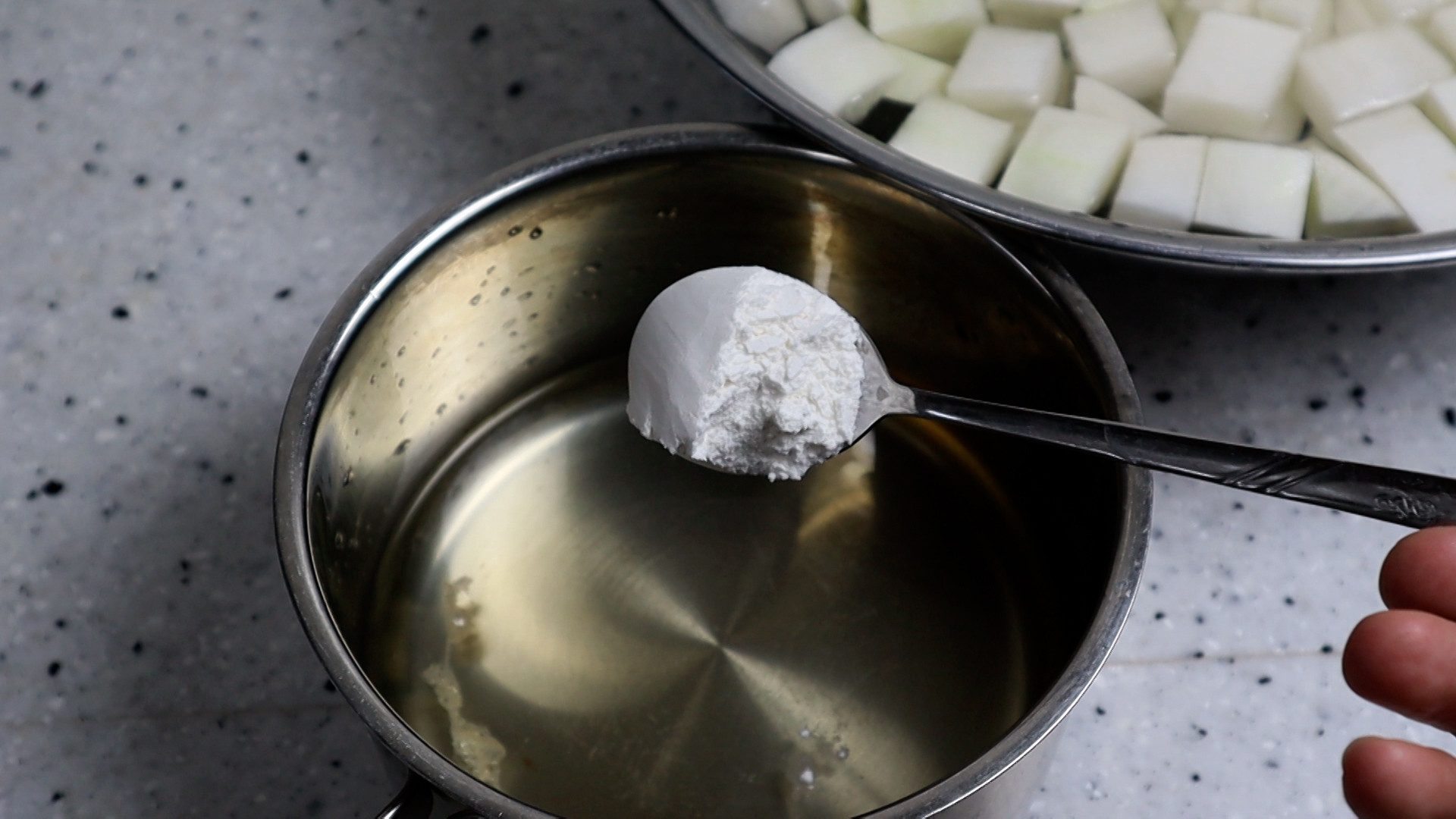 23. 우린물을 냄비에 다시 붓고 찹쌀가루를 넣어주세요.