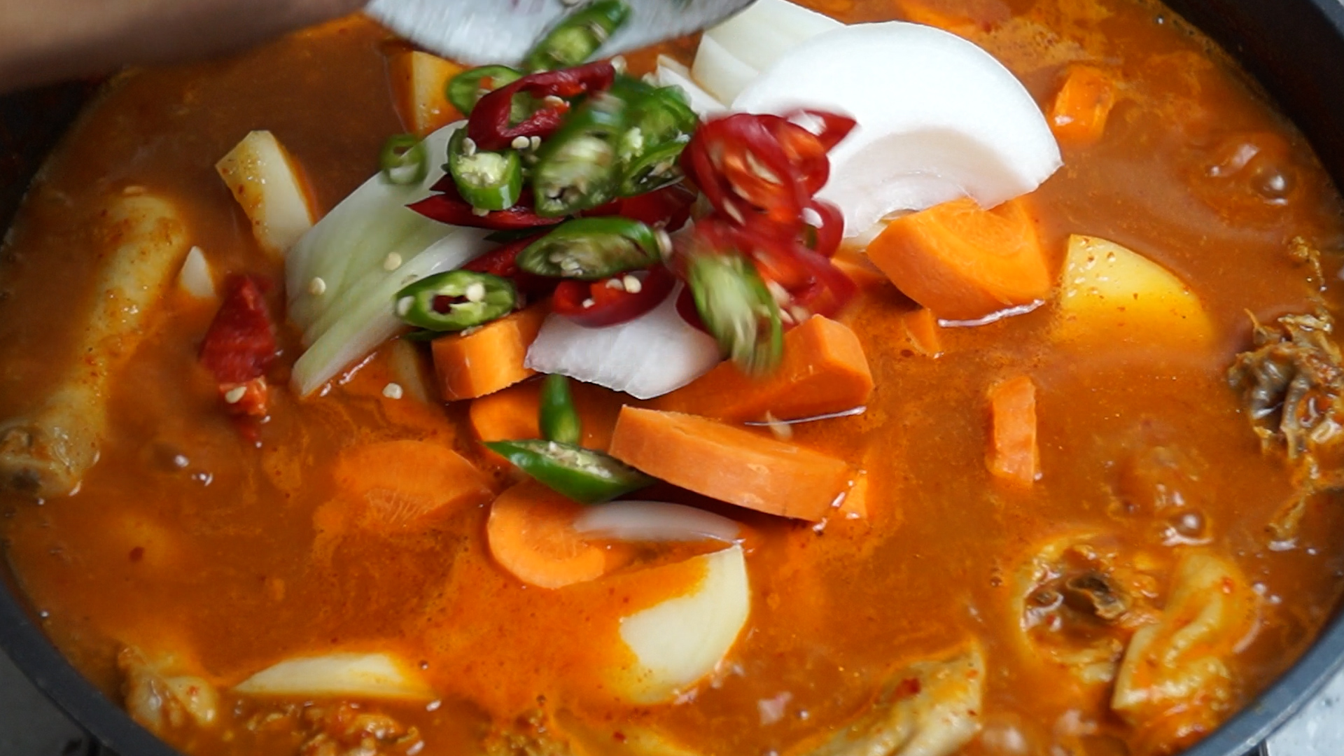 20. 15분을 끓인 다음 야채와 감자,당근을 전부다 넣어주세요.