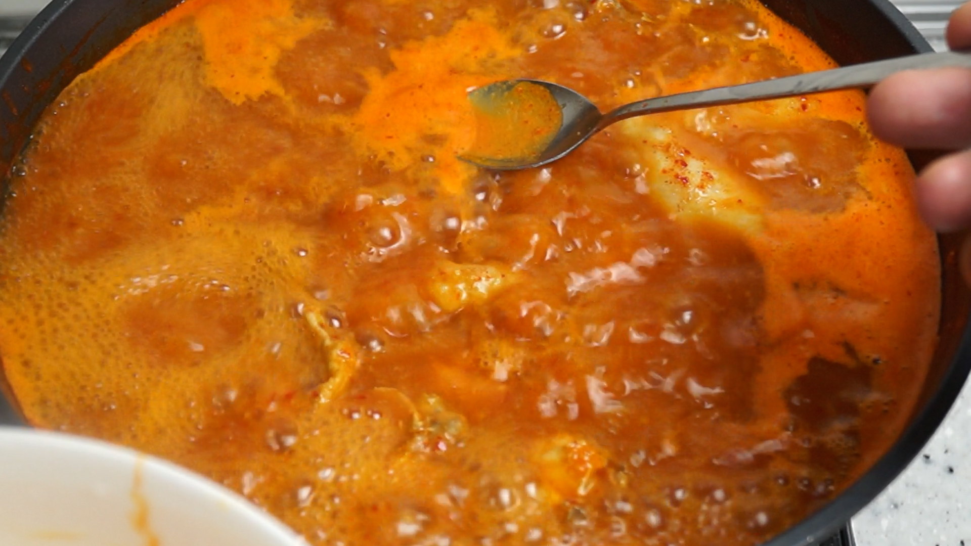 17. 물을 붓고 양념장을 전부 넣어주세요.