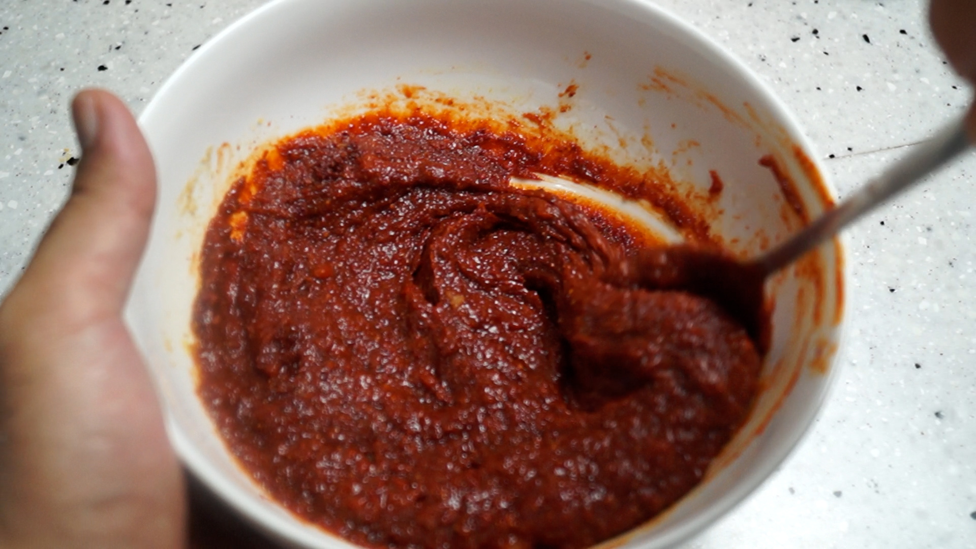 10. 고추장도 너무 고봉으로 퍼지 말고 적당히 퍼서 넣어주세요.