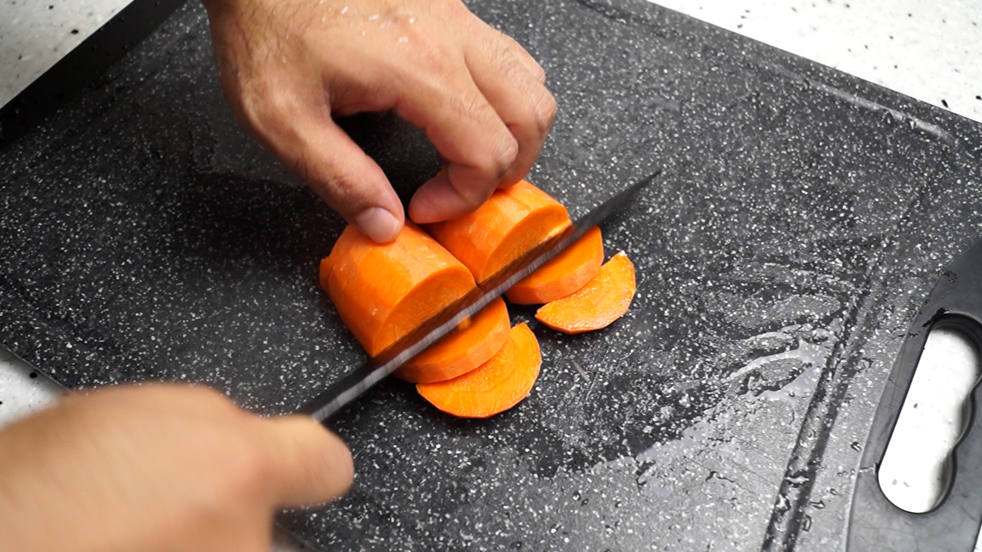 14. 당근은 감자보다 익는속도가 느리니 조금만 더 얇게 썰어주세요.
