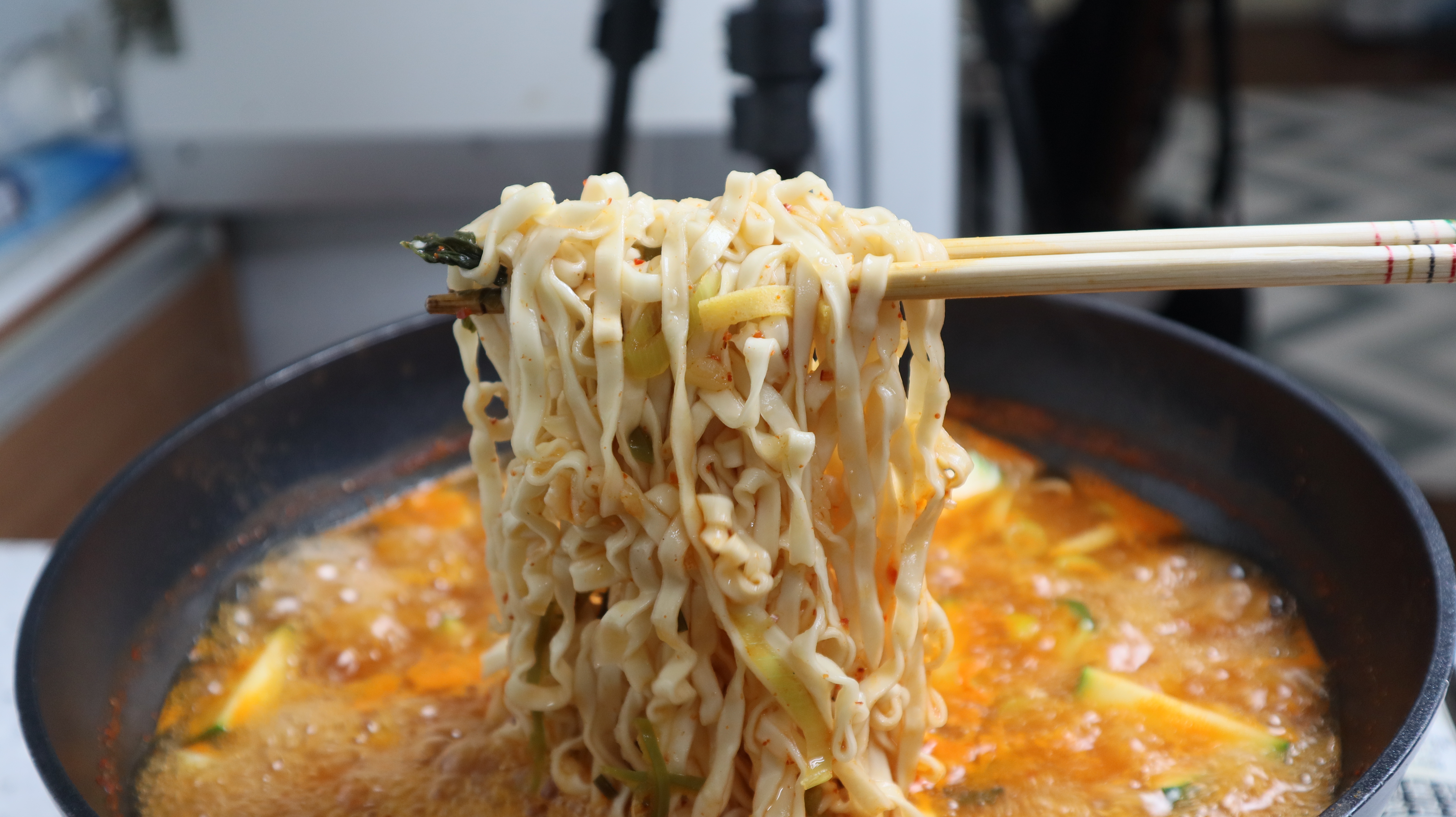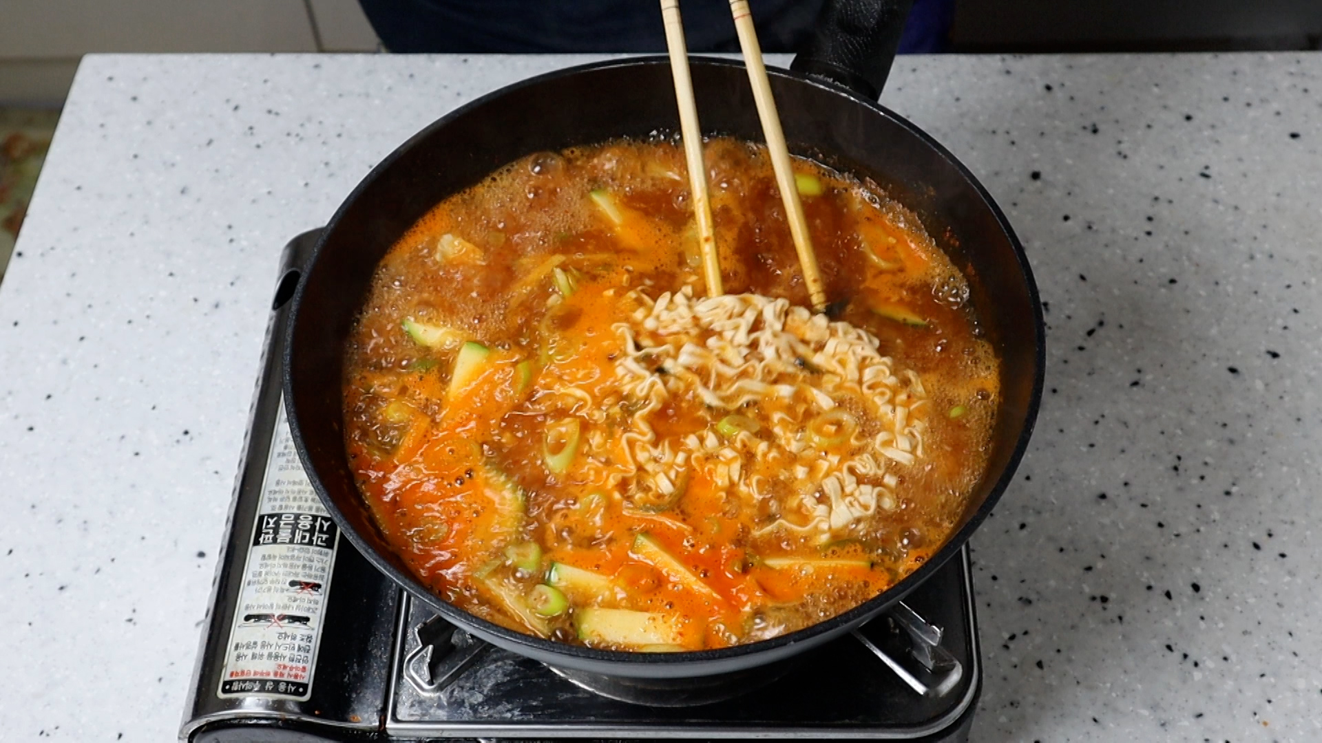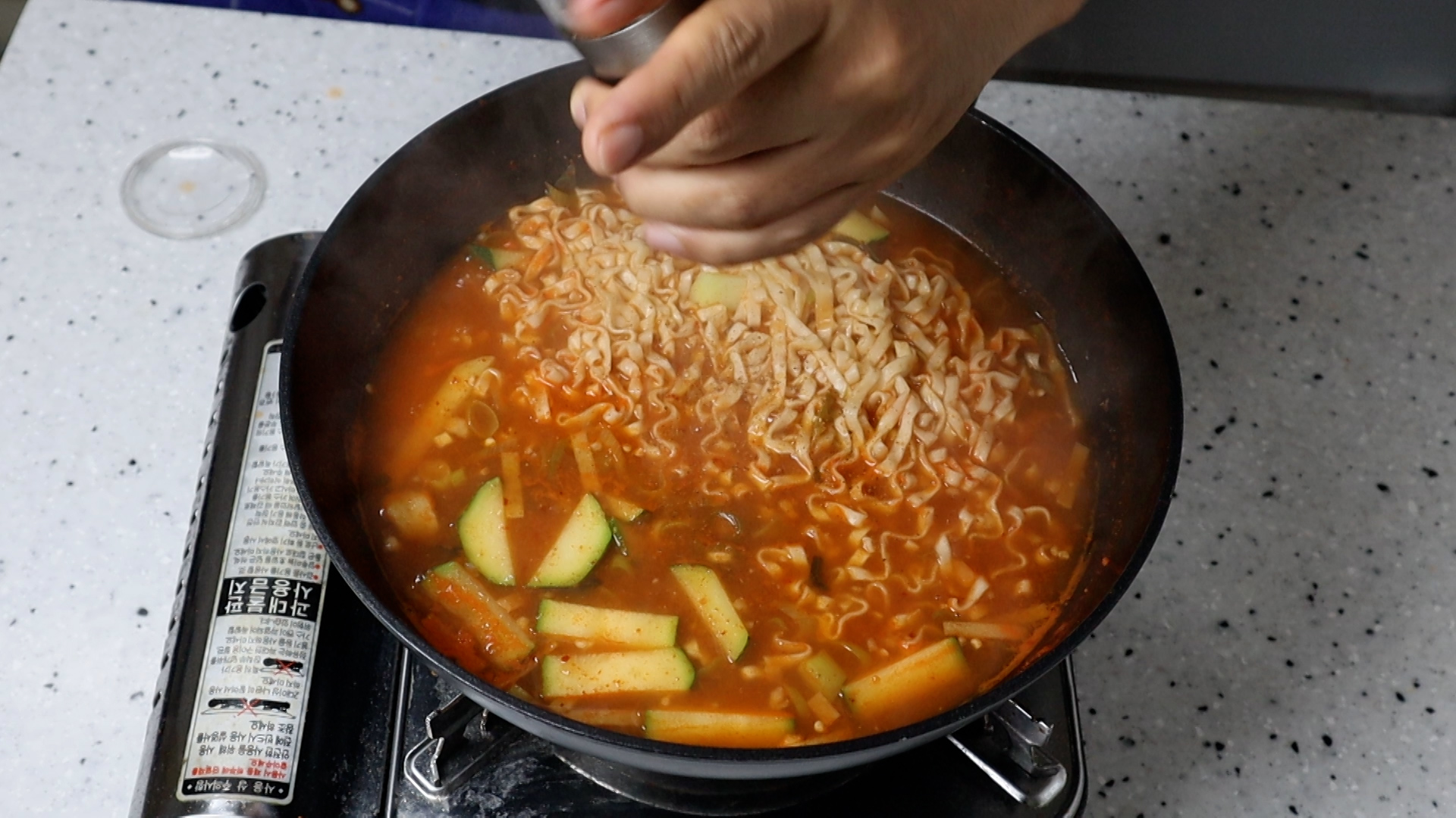 14. 물이 완전히 끓어 오르면 면을 넣어주세요.