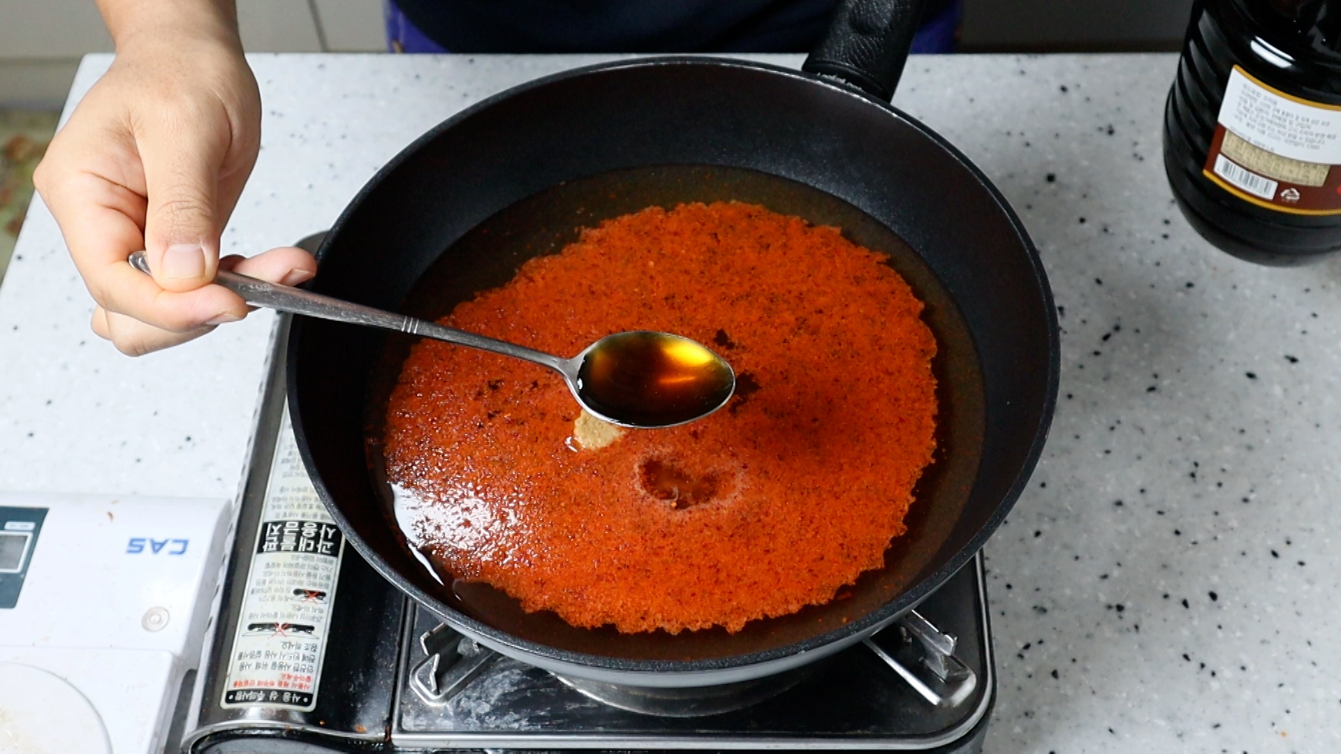 9. 국간장 1스푼을 넣어주세요.