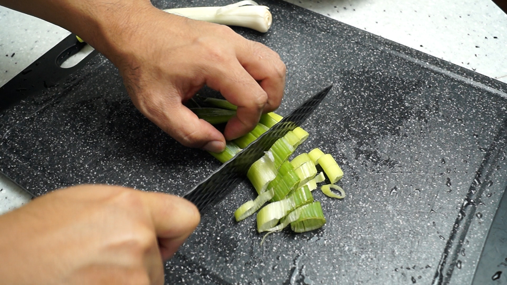 5. 대파는 흰대 초록대를 섞어서 큼직하게 잘라주세요. 찌개 끓일때는 초록대가 들어가줘야 국물맛이 풍부해집니다.