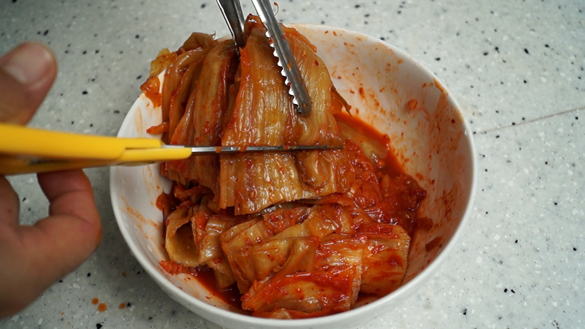3. 김치는 선호하는 크기에 맞춰 먹기좋은 크기로 잘라주세요.