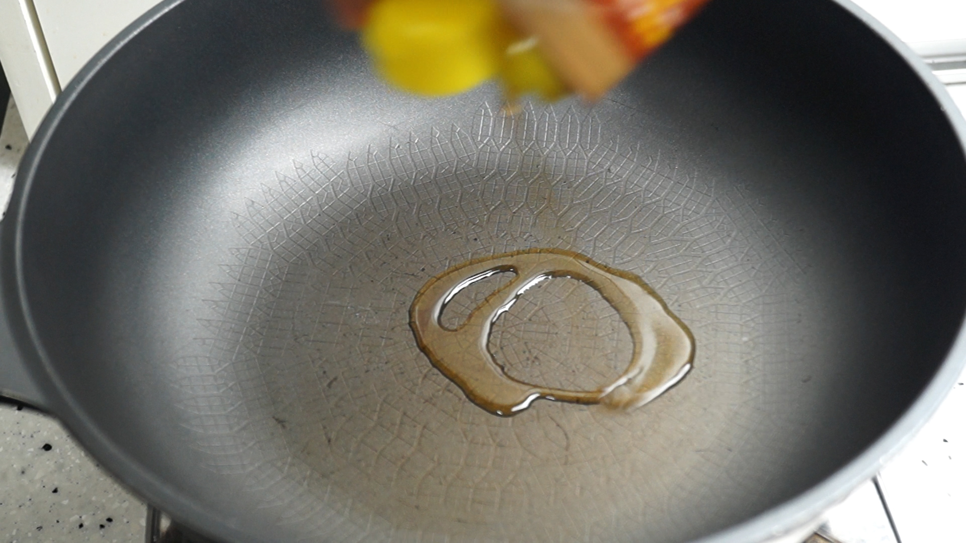 7. 팬에 참기름을 붓고 불을 강불로 올려주세요. 발암물질은 참기름이 타는 온도를 넘어서야 발생하는거니 타는점을 넘어 연기가 나기전에 조리를 할거에요. 참기름이 부담스러우시면 식용유로 대체하셔도 됩니다.
