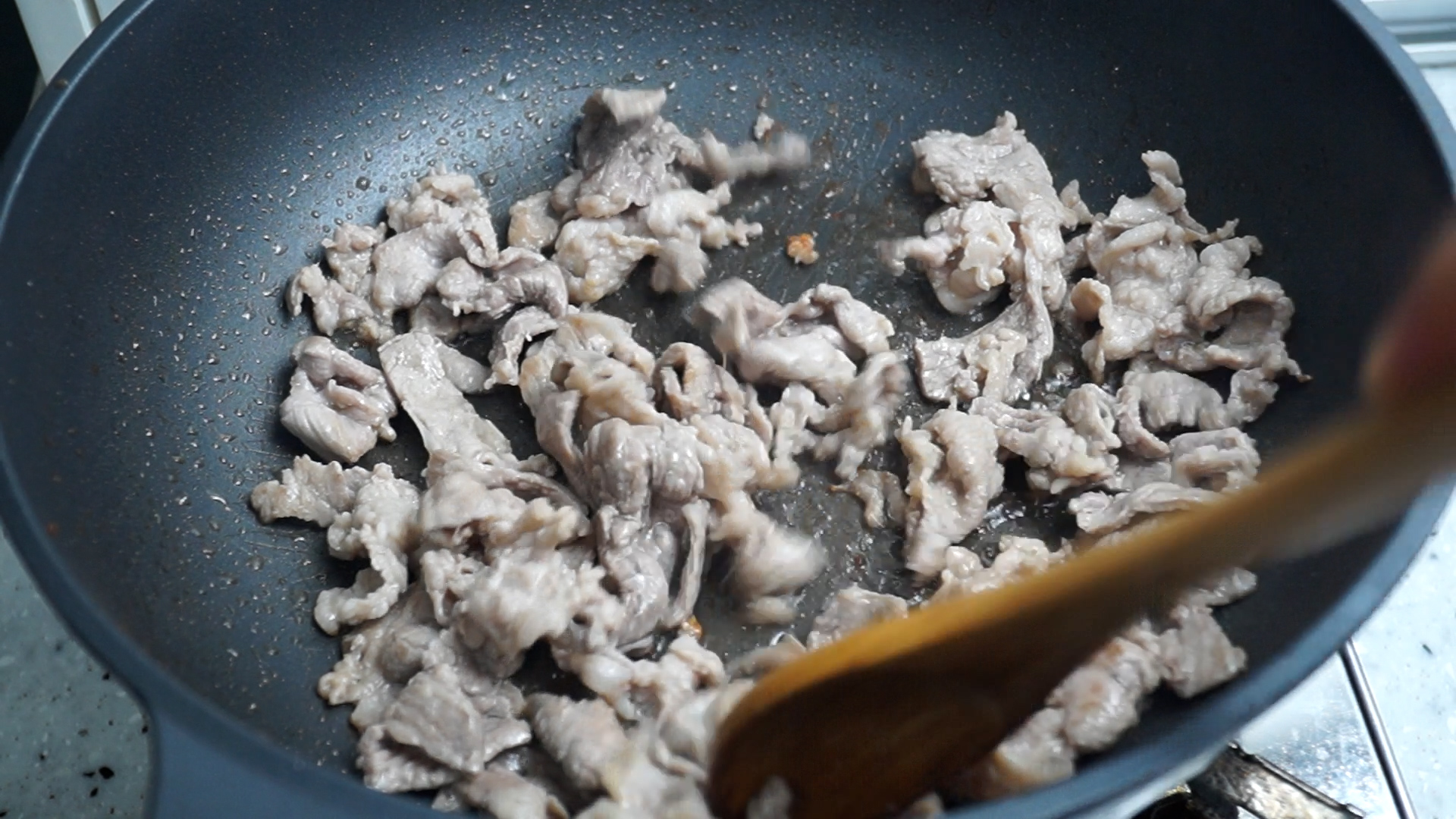 8. 기름기가 많은 삼겹살 또는 앞다리살을 얇은 걸로 골라서 참기름이 타기전에 고기를 넣고 섞어가면서 볶아주세요.