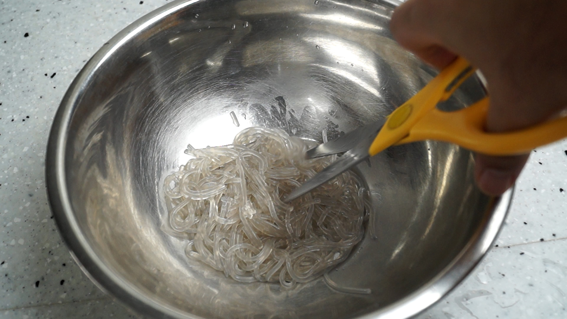 6. 삶은 당면을 잘게잘게 잘라주세요.