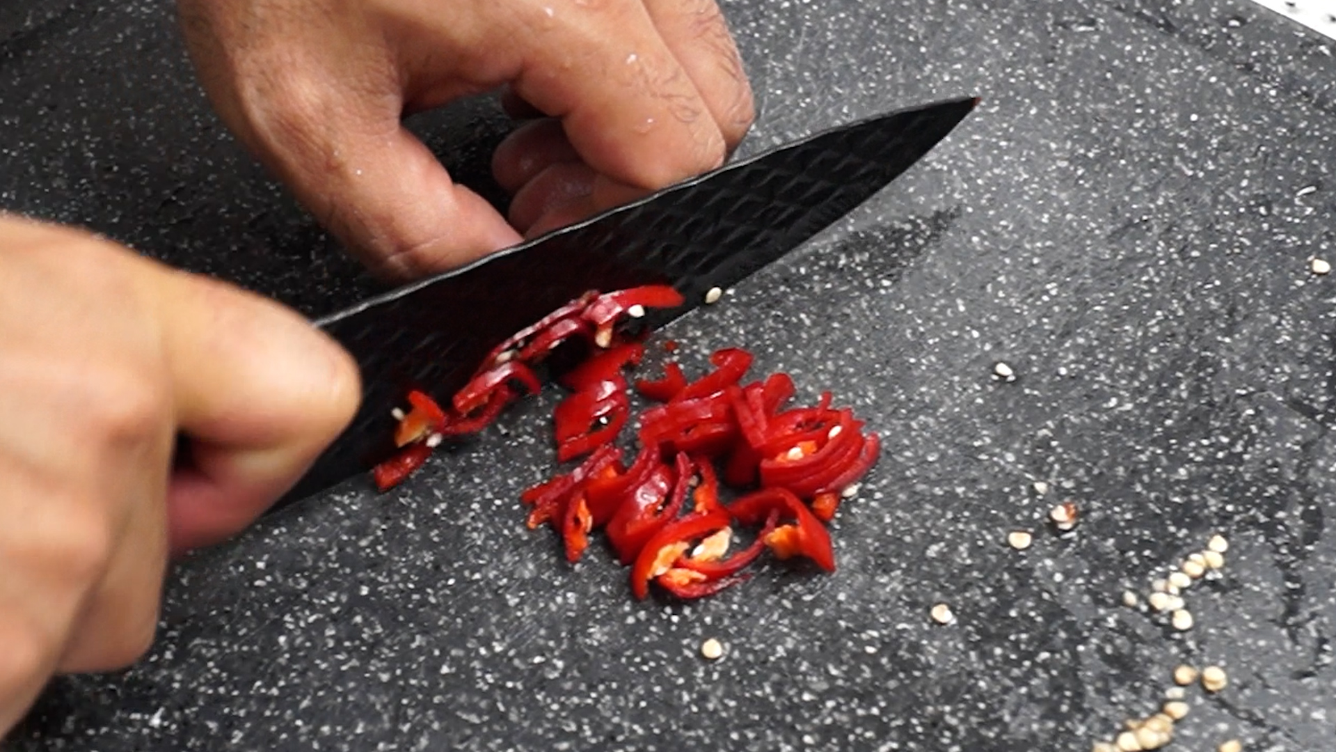 3. 청양고추는 씨를 뺀 다음 잘게 잘라주세요. 씨빼는게 귀찮으시면 씨와함께 잘게 다져주셔도 됩니다. 매운게 싫으시면 부추를 땡초양만큼 더 넣어주세요.