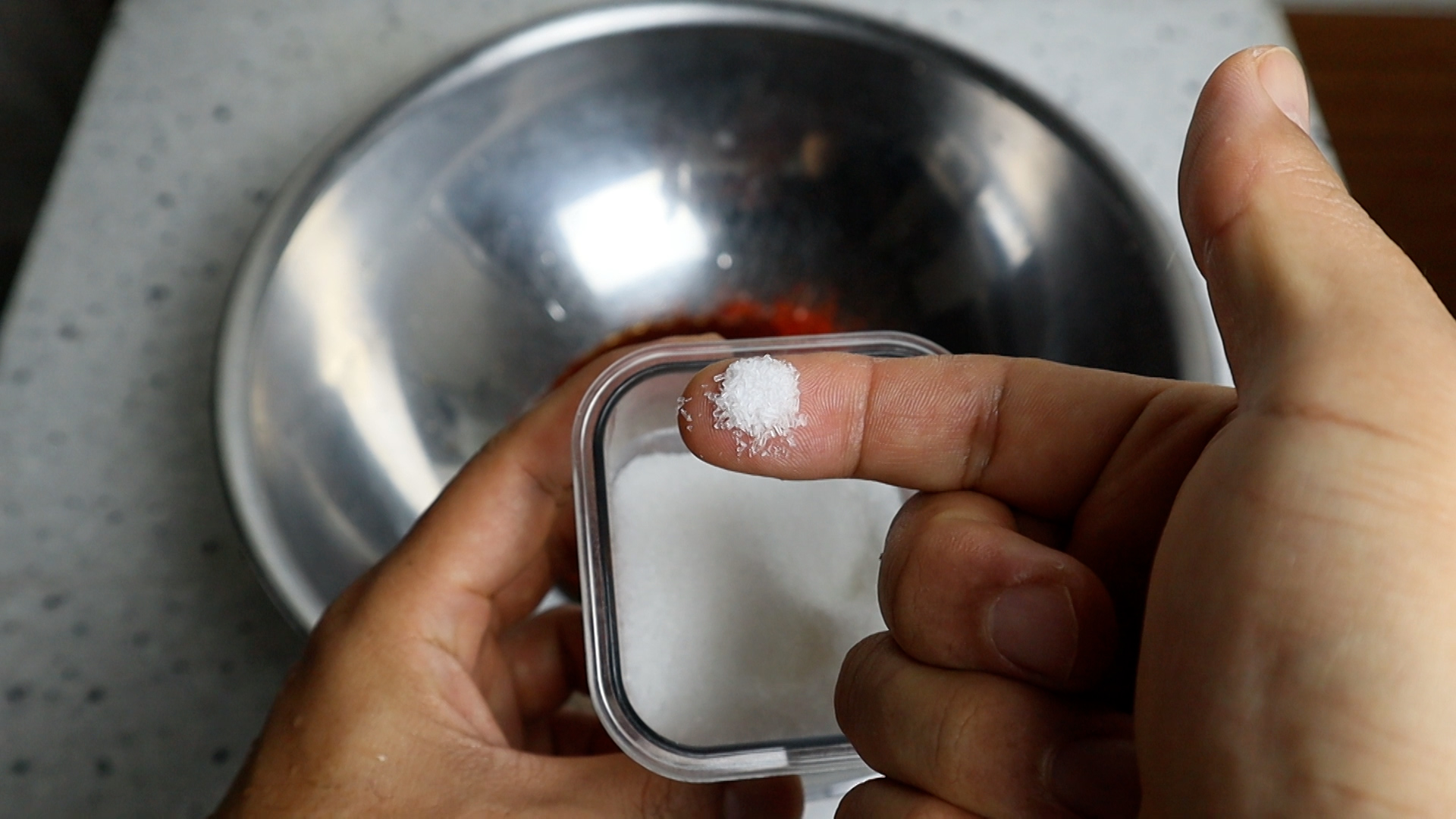 6. 설탕은 깍아서 넣어주세요. 단맛은 양념 완성후 추가할수 있으니 깍아서 넣는게 좋아요.