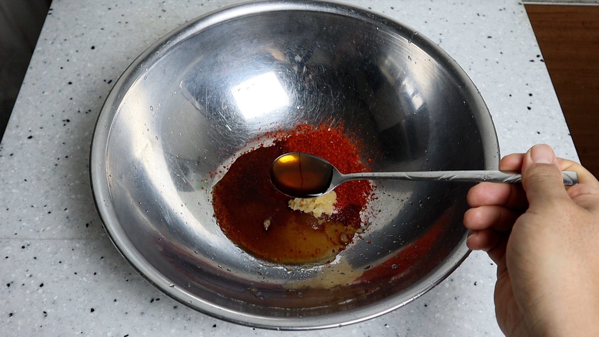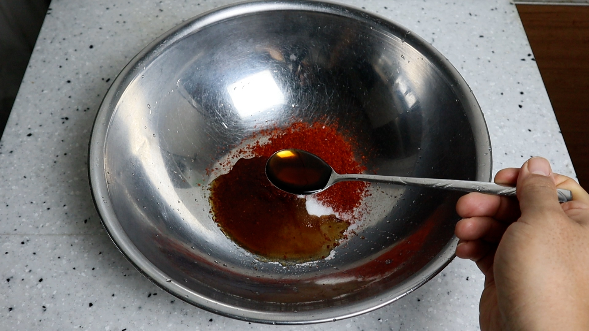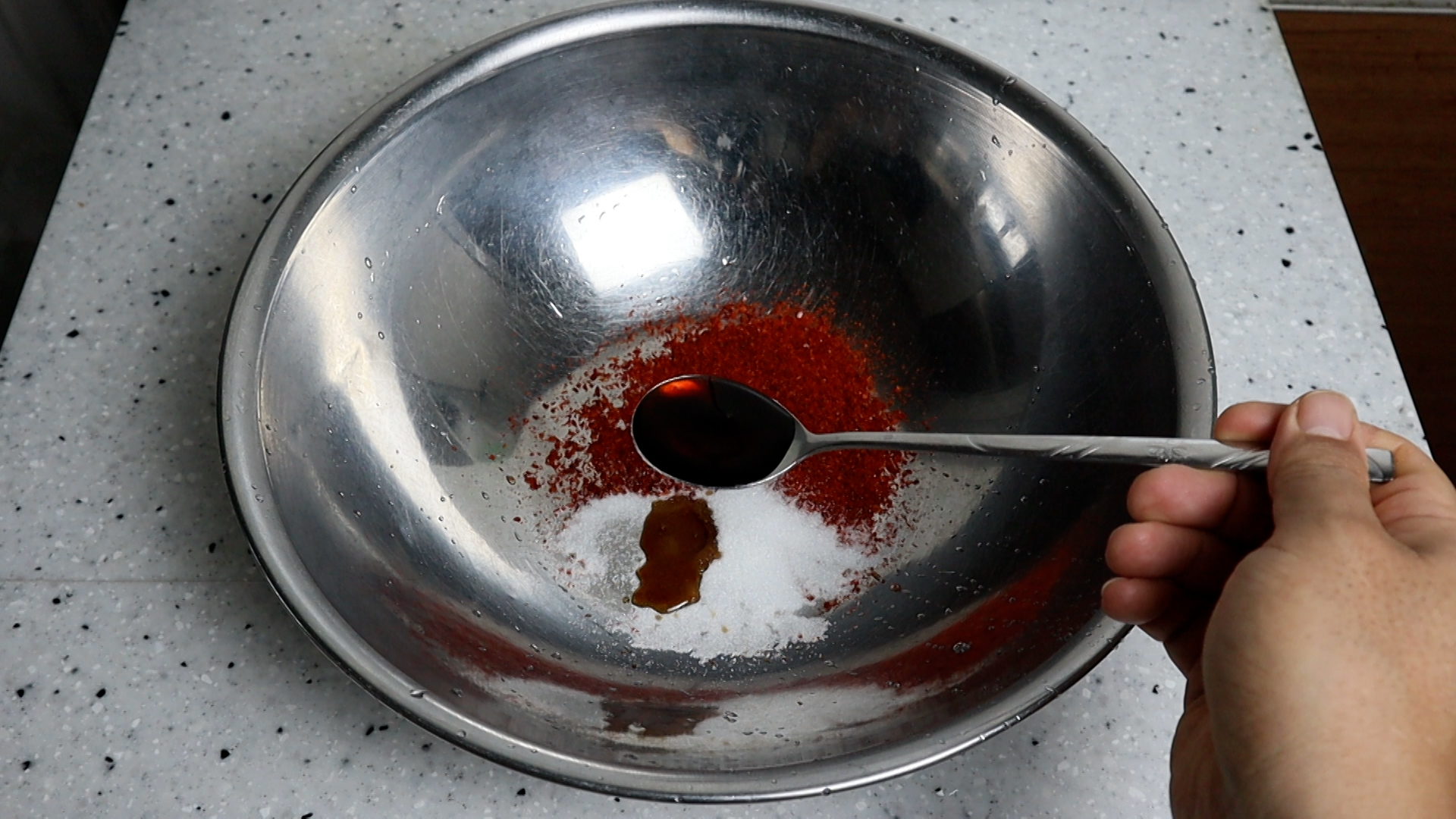 5. 볼에 양념장에 적힌 재료를 전부 넣어주세요. 고춧가루는 반찬용 일반 고춧가루입니다.