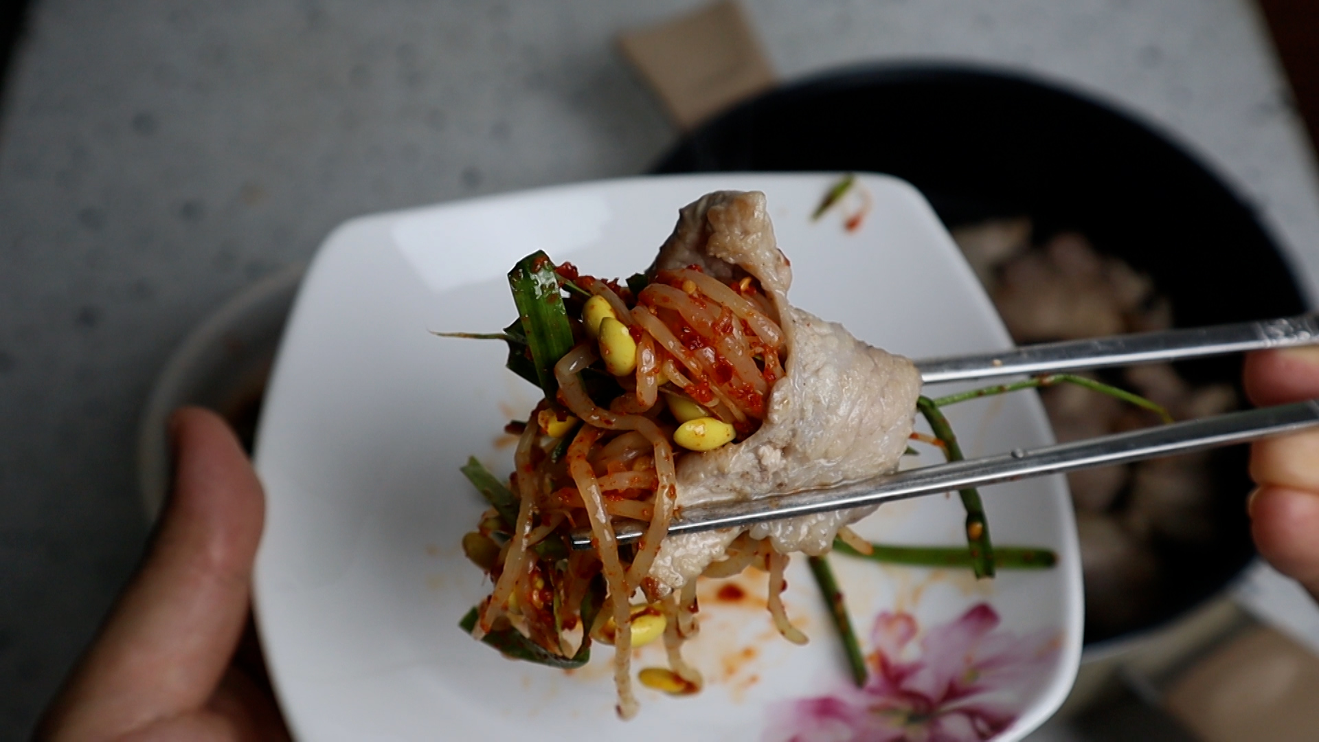새콤짭짤한 양념장이 콩나물과 잘 어우러져서 밥반찬으로도 좋지만 고기구워먹을때 같이 먹으면 정말 맛있습니다.