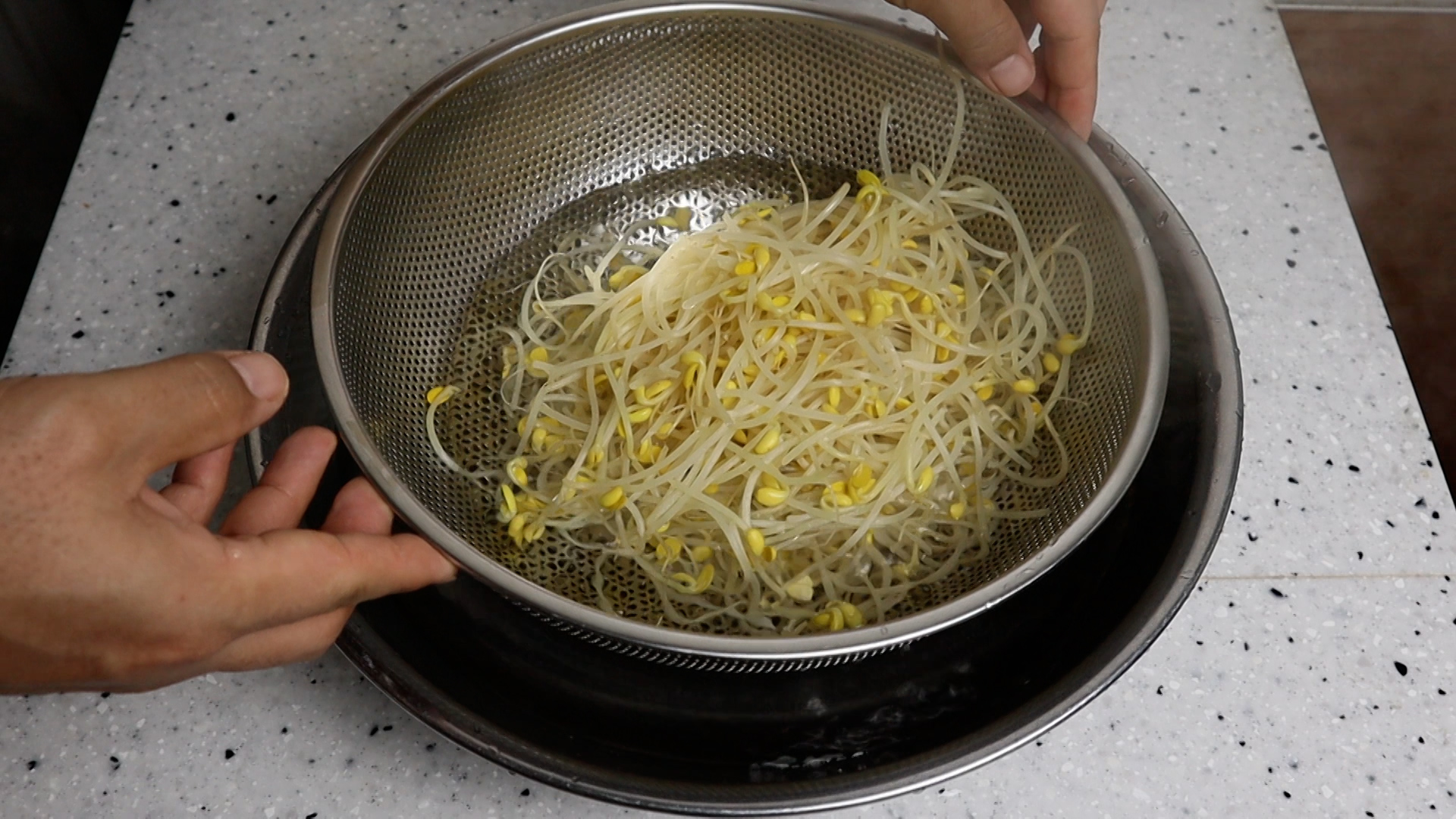 4. 찐 콩나물은 잽싸게 찬물에 담궈 식혀주세요. 열기가 남아 있으면 콩나물이 계속 쪼그라 들며 질겨집니다. 바로 식혀야 아삭한 콩나물을 즐길수 있어요.
