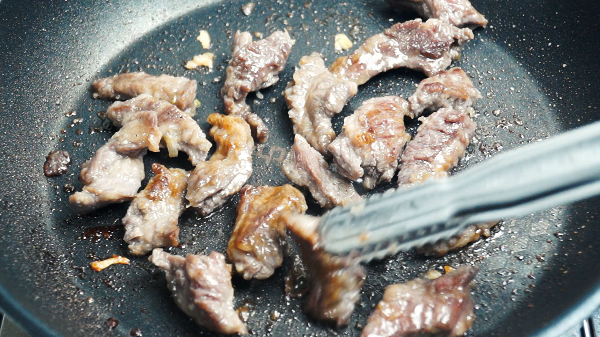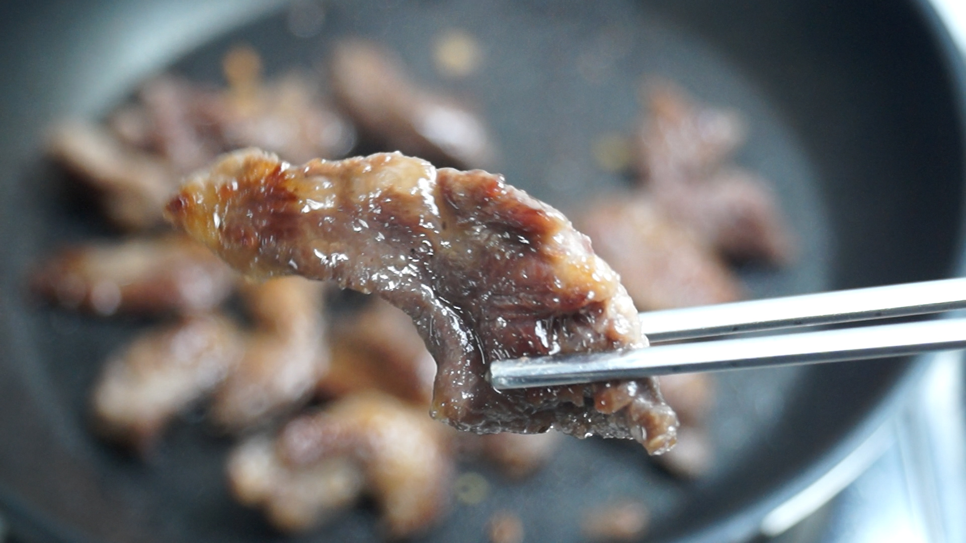 9. 진간장은 조금만 넣어줍니다. 돼지고기와 달리 소고기중 이런 특수부위는 간장맛을 최소화 시켜서 소고기 특유의 향을 살려주시는게 좋아요.
