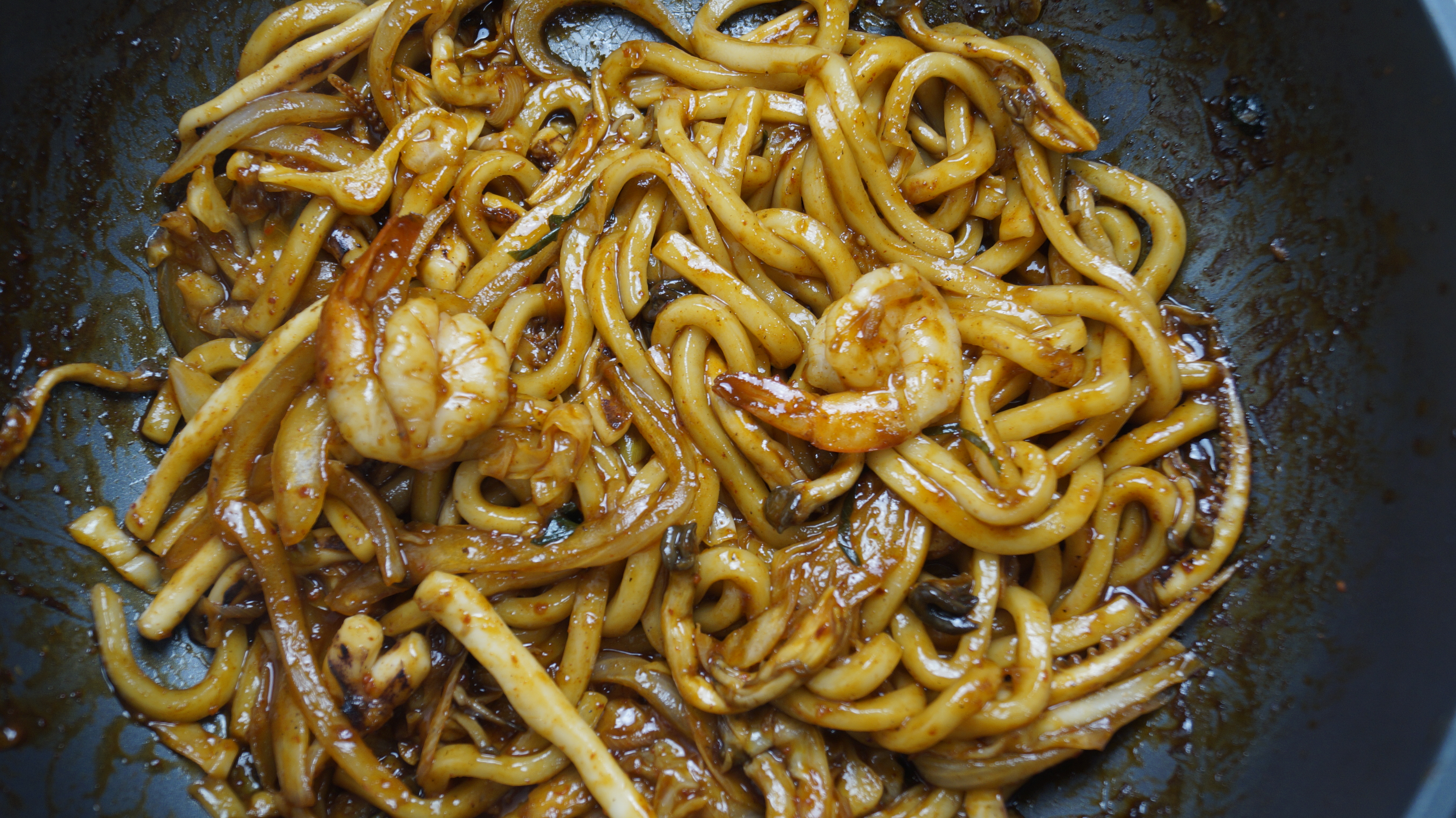 쫄깃 탱글한 우동면발에 해물과 너무 잘어울리는 양념조합으로 볶아내면 우동사리 2개를 볶아도 금방 순삭!