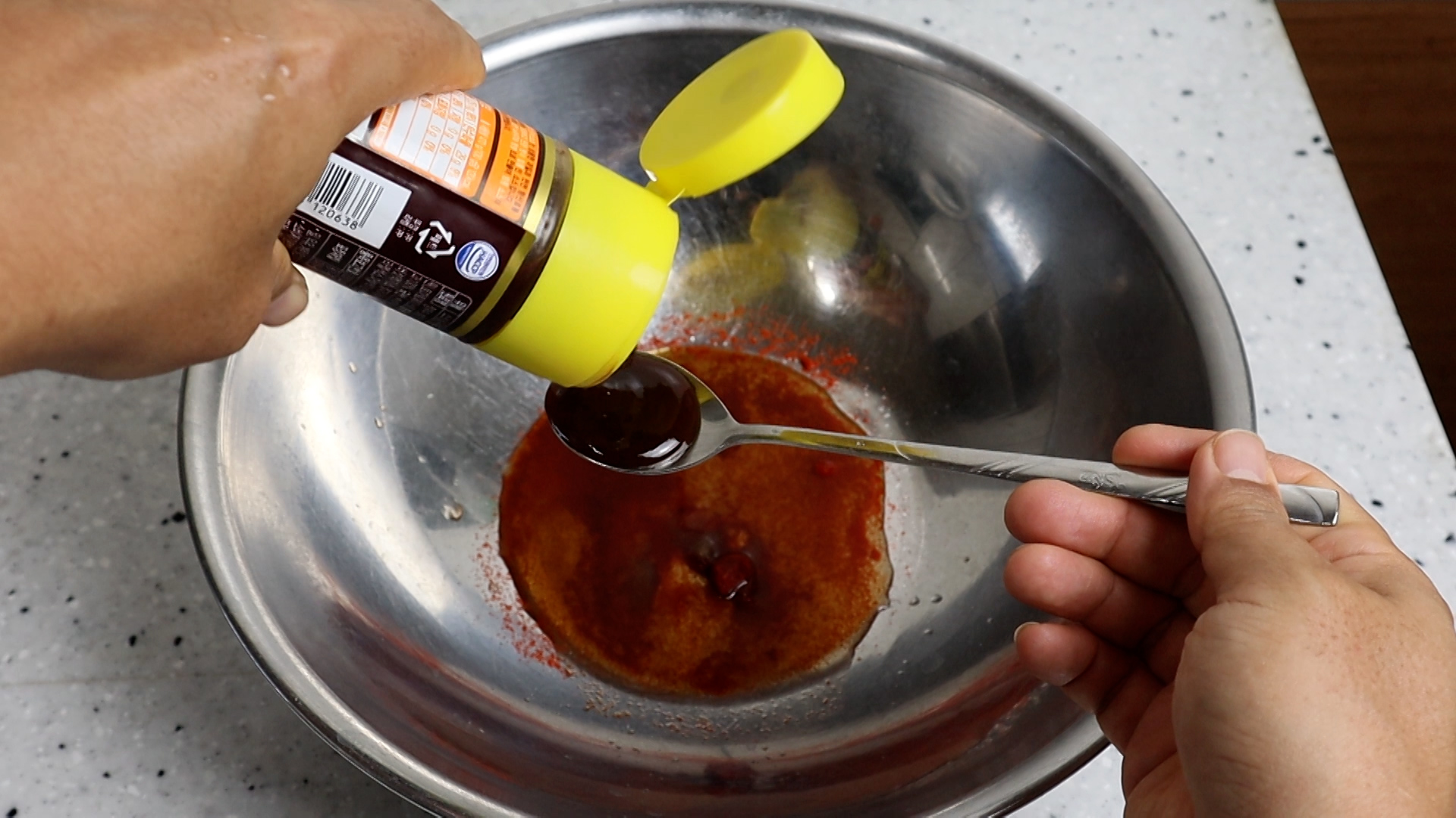 8. 돈까스 소스나 우스터 소스 아무거나 1스푼 넣어주시면 더욱 독특하게 비빔국수양념을 즐길수 있습니다.