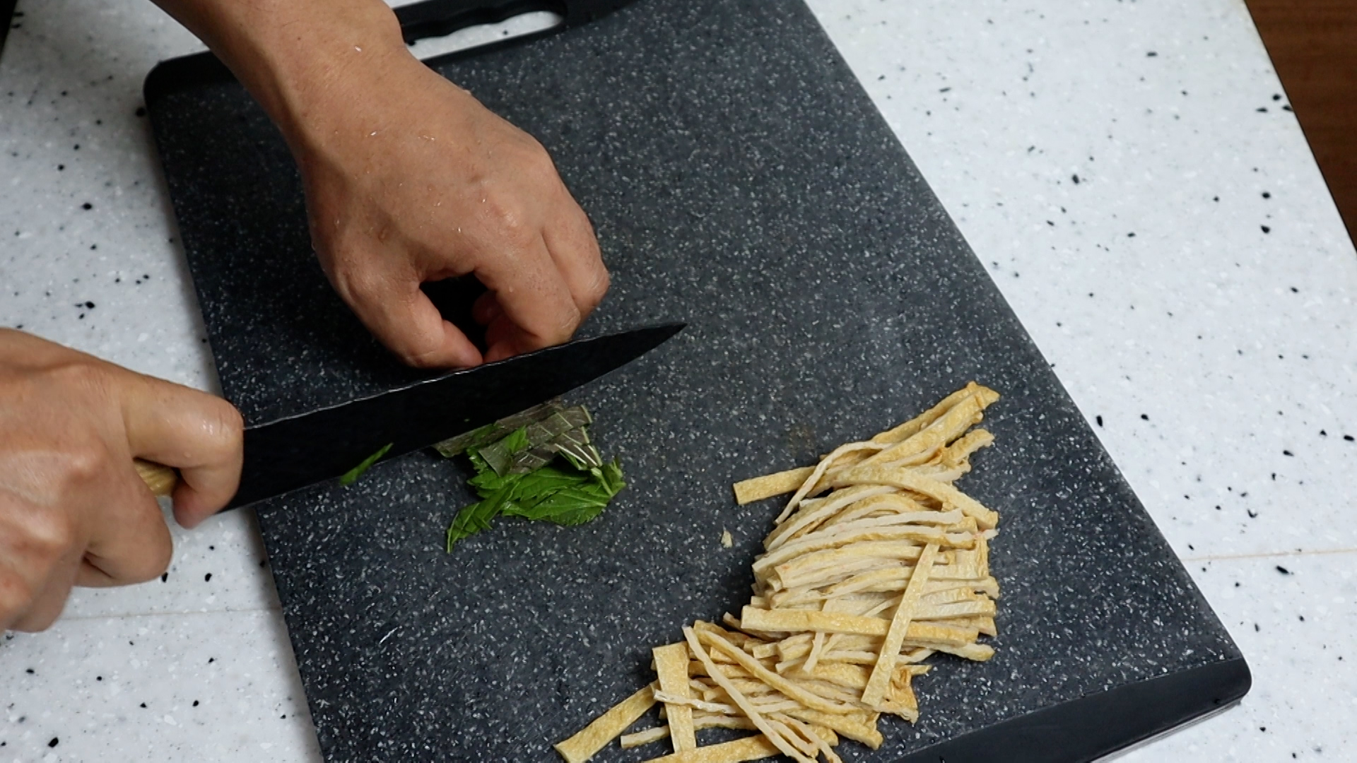 13. 깻잎을 길쭉하게 채썰고 땡초를 잘게 다져주세요. 기호에 따라 상추,콩나물,등 야채를 적당히 추가해보세요.