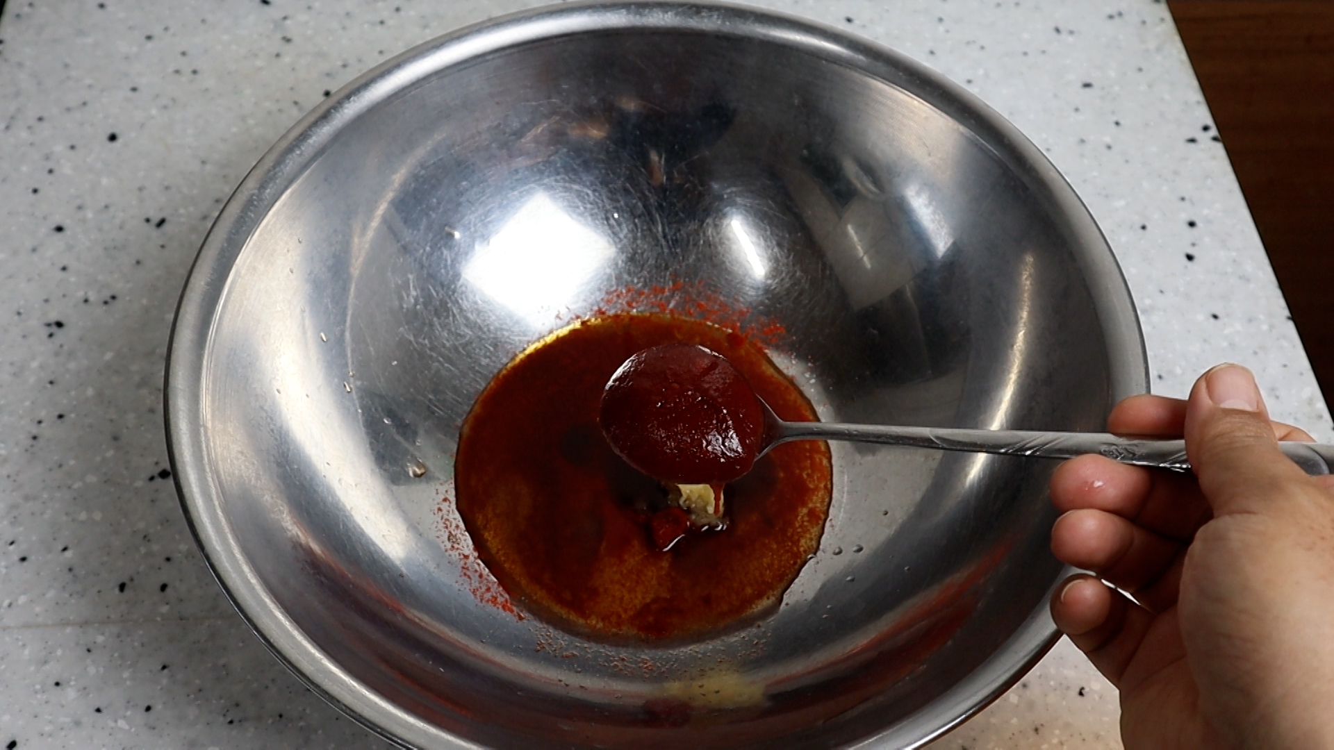5. 식초는 1스푼을 넣어보고 양념 완성후 입맛에 따라 조금더 넣어보세요.