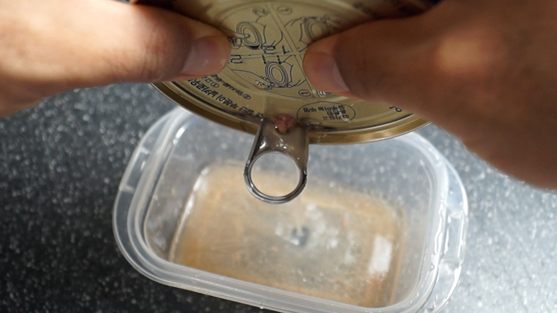 5. 참치큰거 1캔을 꼭지를 살짝만 따서 기름을 나오는 만큼만 따라내서 버린 다음 준비해주세요.