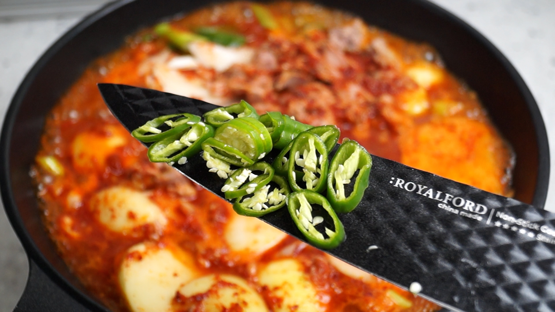 24. 기호에 따라 완성 직전에 땡초 1개를 잘라서 넣어주세요.