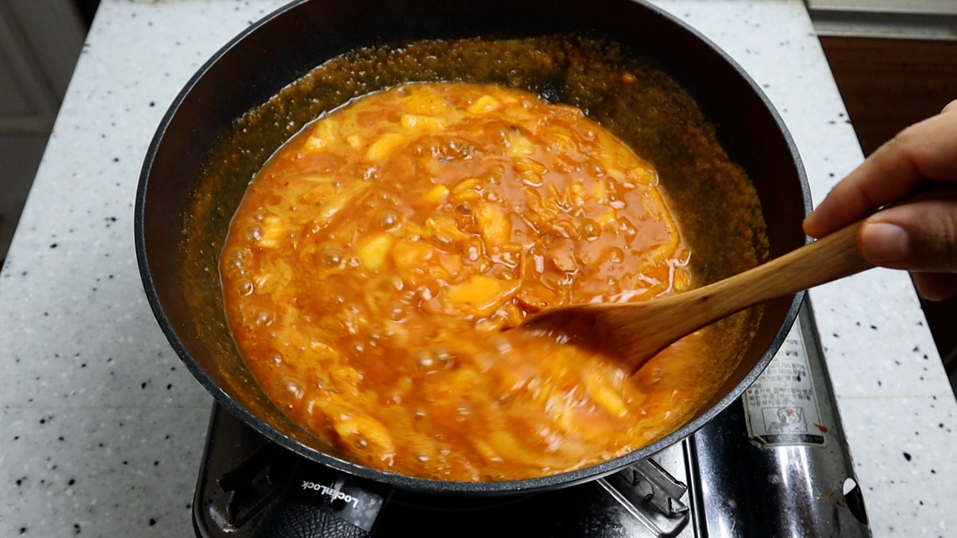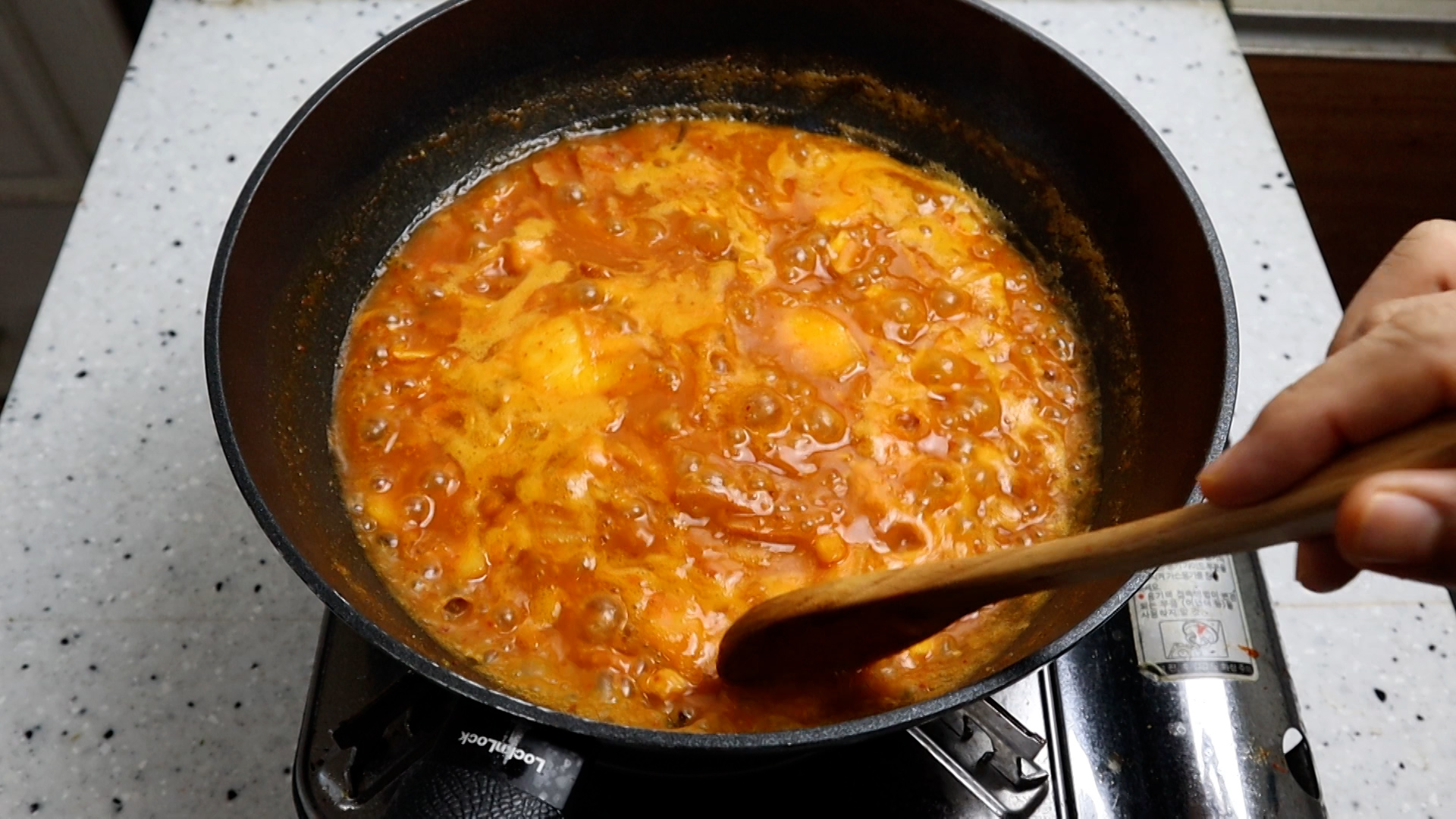12. 강불에 끓기 시작하면 카레가루를 녹이며 3~4분을 끓여주세요.