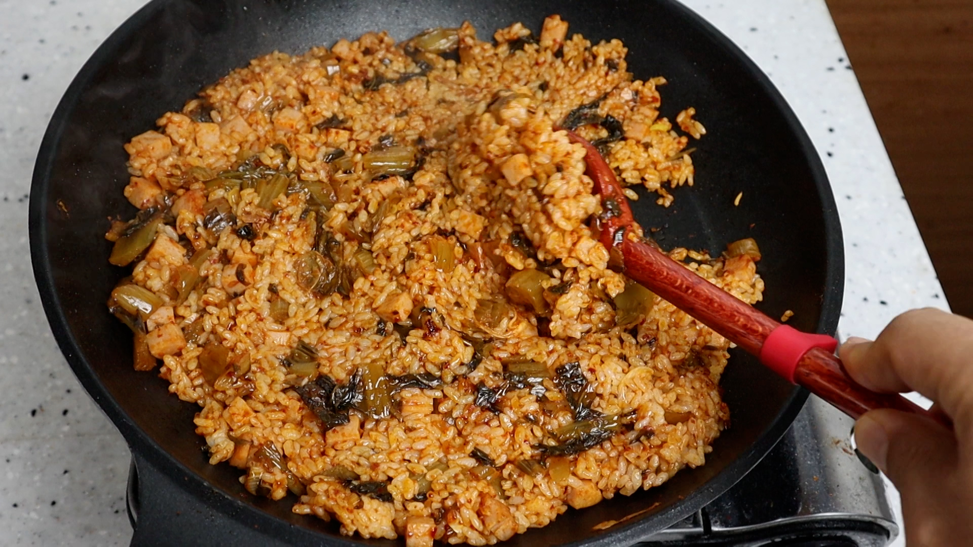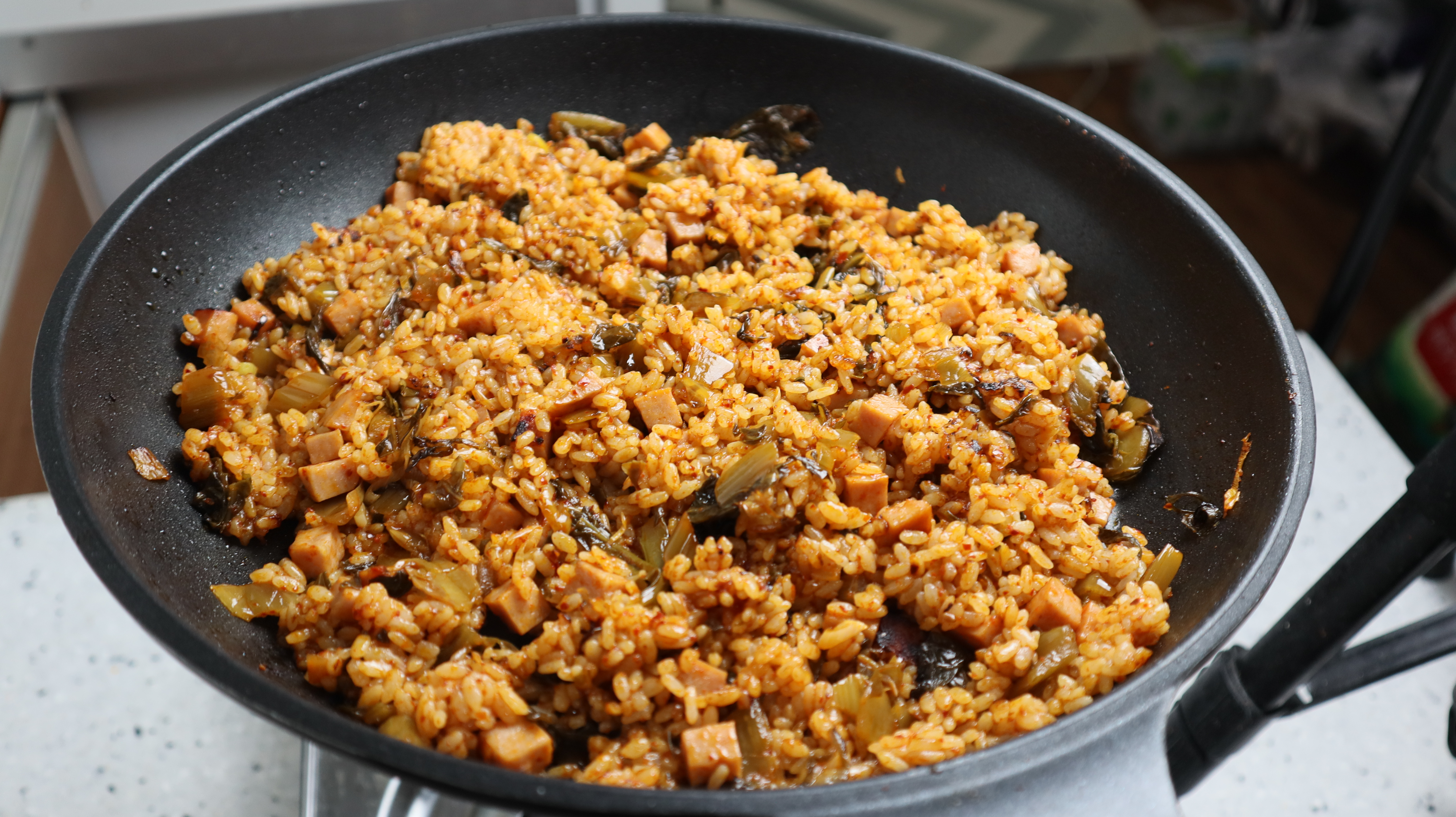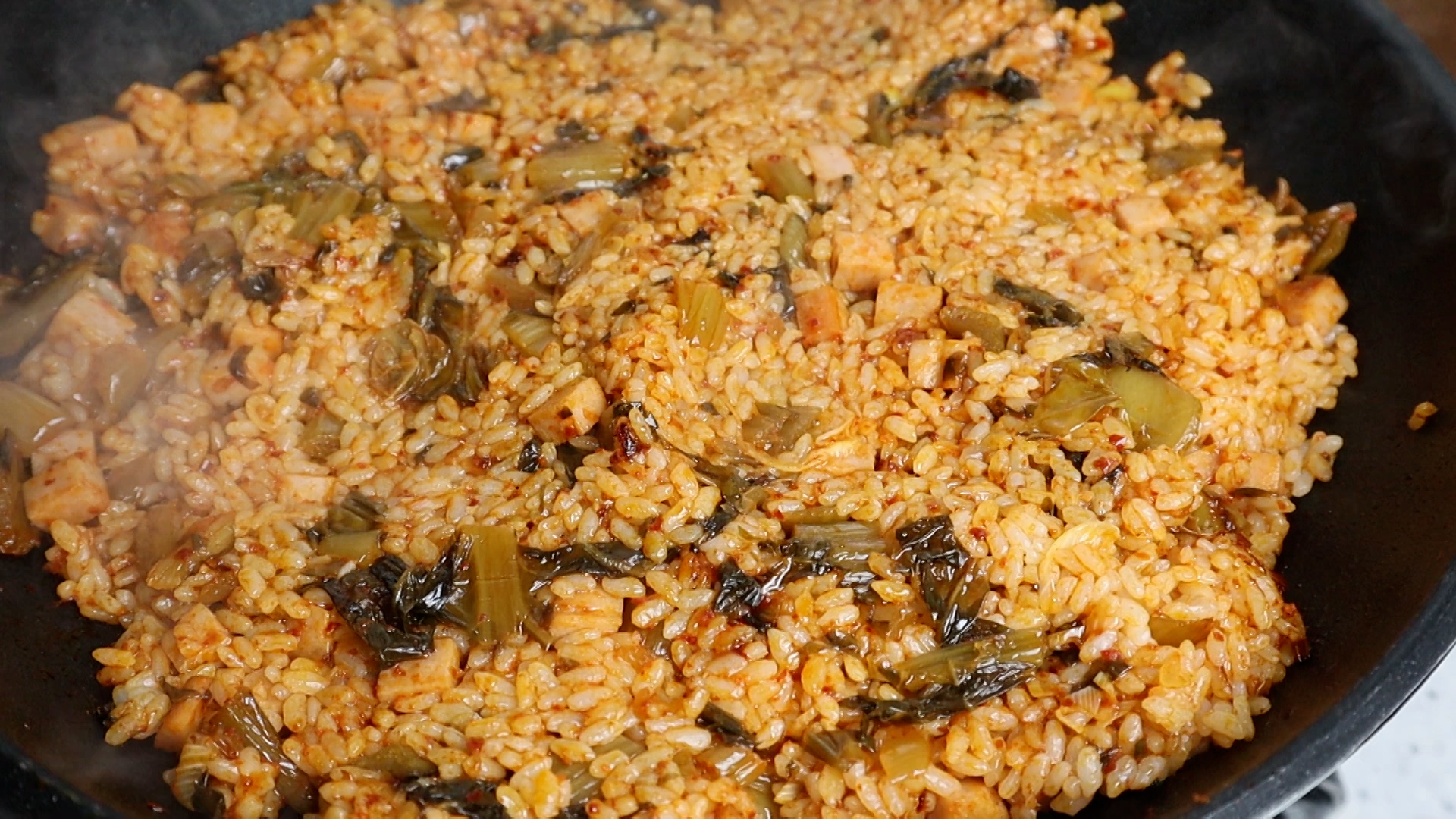 평소엔 배추김치를 활용해서 김치볶음밥을 많이 하는데 1년 정도 곰삭은 갓김치로 김치볶음밥을 만들어 봤더니 이게 대박이 터졌어요!