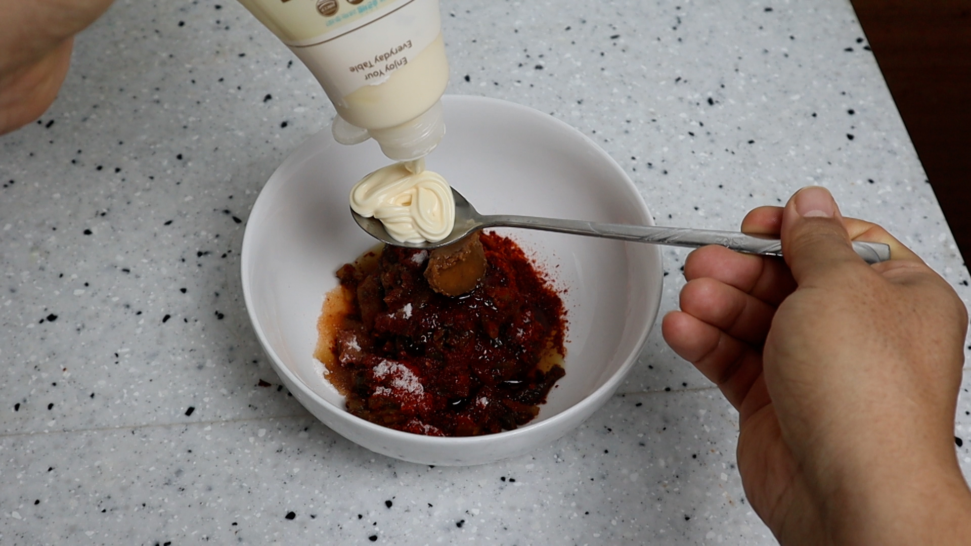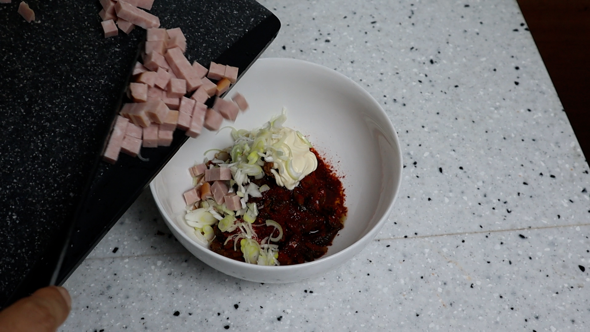 10. 마요네즈를 넣어주세요. 마요네즈 대신 허니머스타드를 사용하면 또 다른 매력이 터진답니다^^~