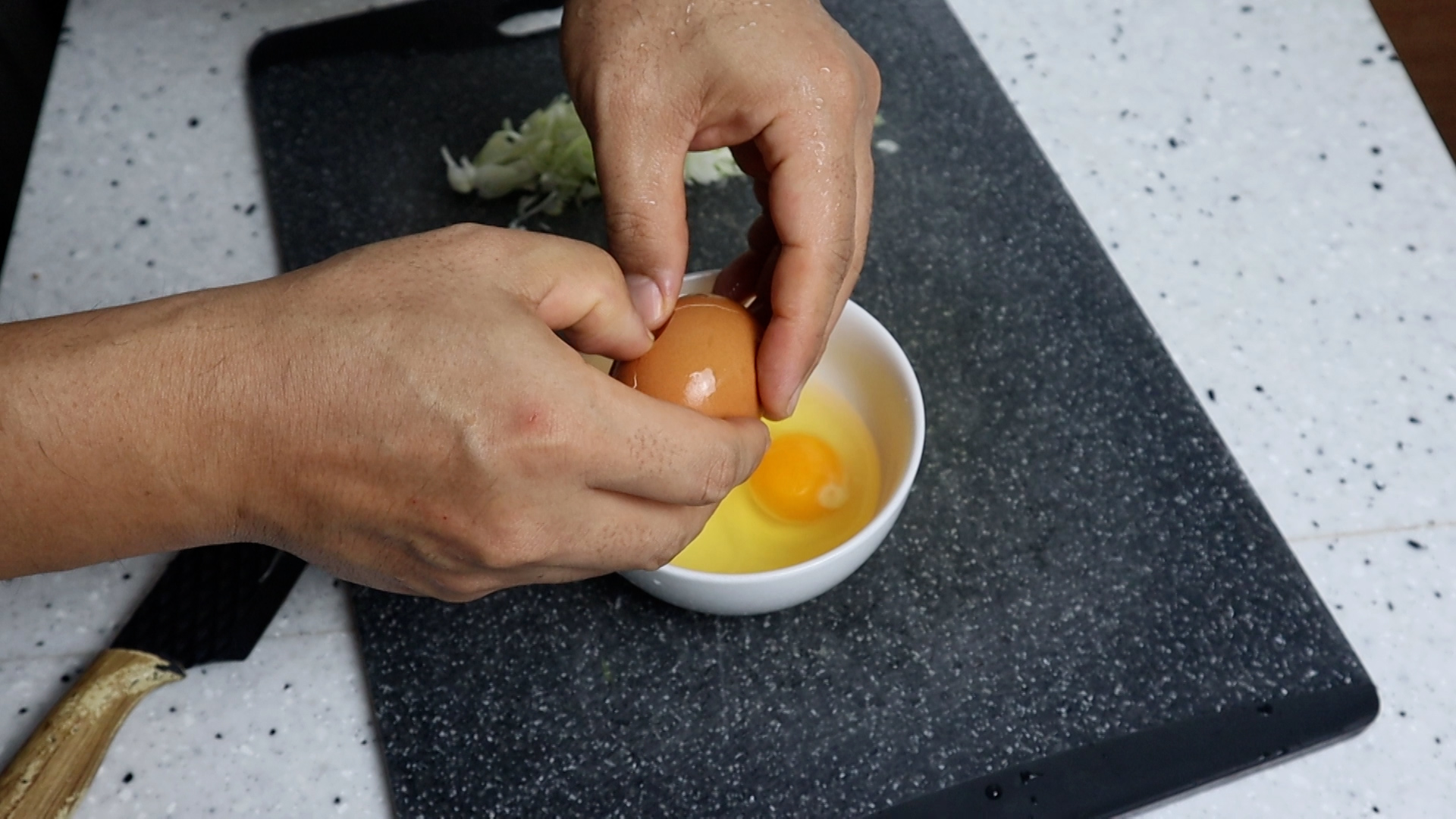 2. 계란 3알을 그릇에 까넣어주세요.