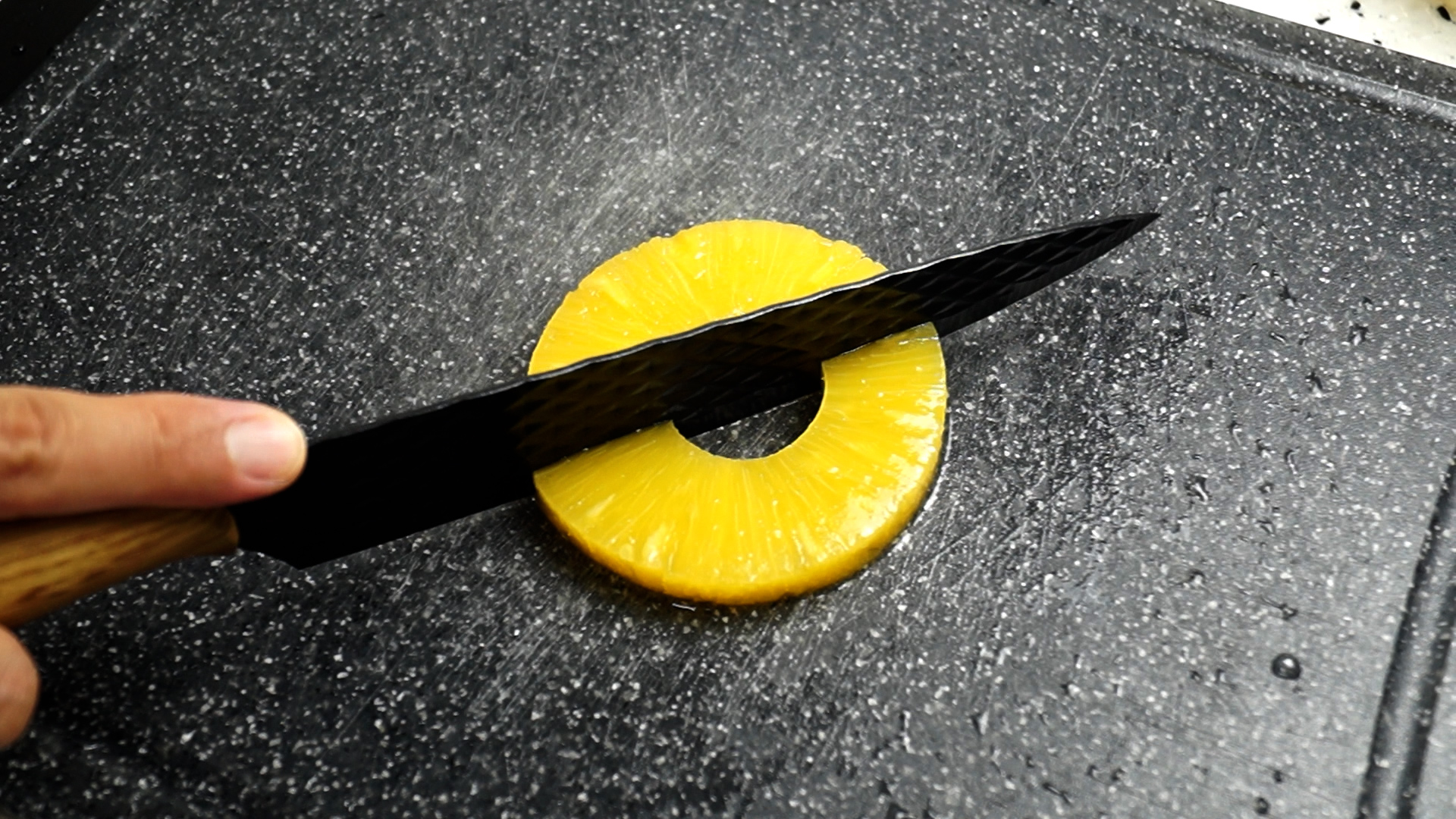 1. 캔파인애플에 들어있는 동그런가 1개를 꺼내 반으로 잘라주세요. 반만사용할거에요~ 나머지는 만드는 동안 당보충 차원에서 드셔도 좋아용^^