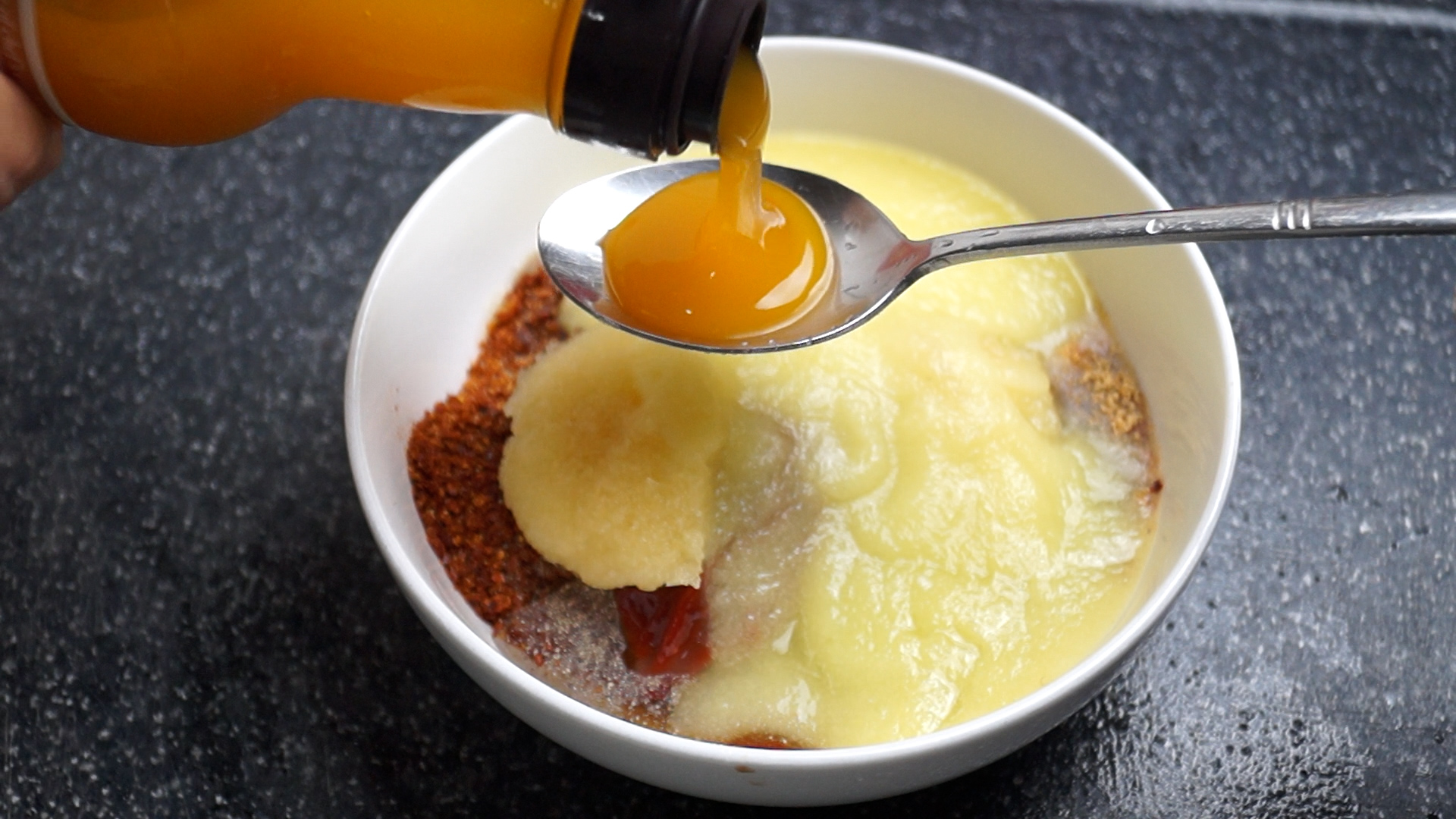 4. 그릇에 양념란에 적힌 양념들을 분량껏 전부넣어주세요. 양념종류가 좀 많지만 그만큼 맛있답니다^^ 고춧가루는 중간입자 고춧가루를 사용해주세요.