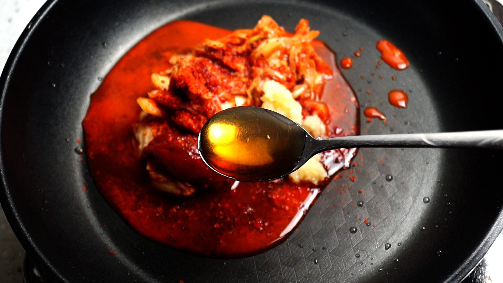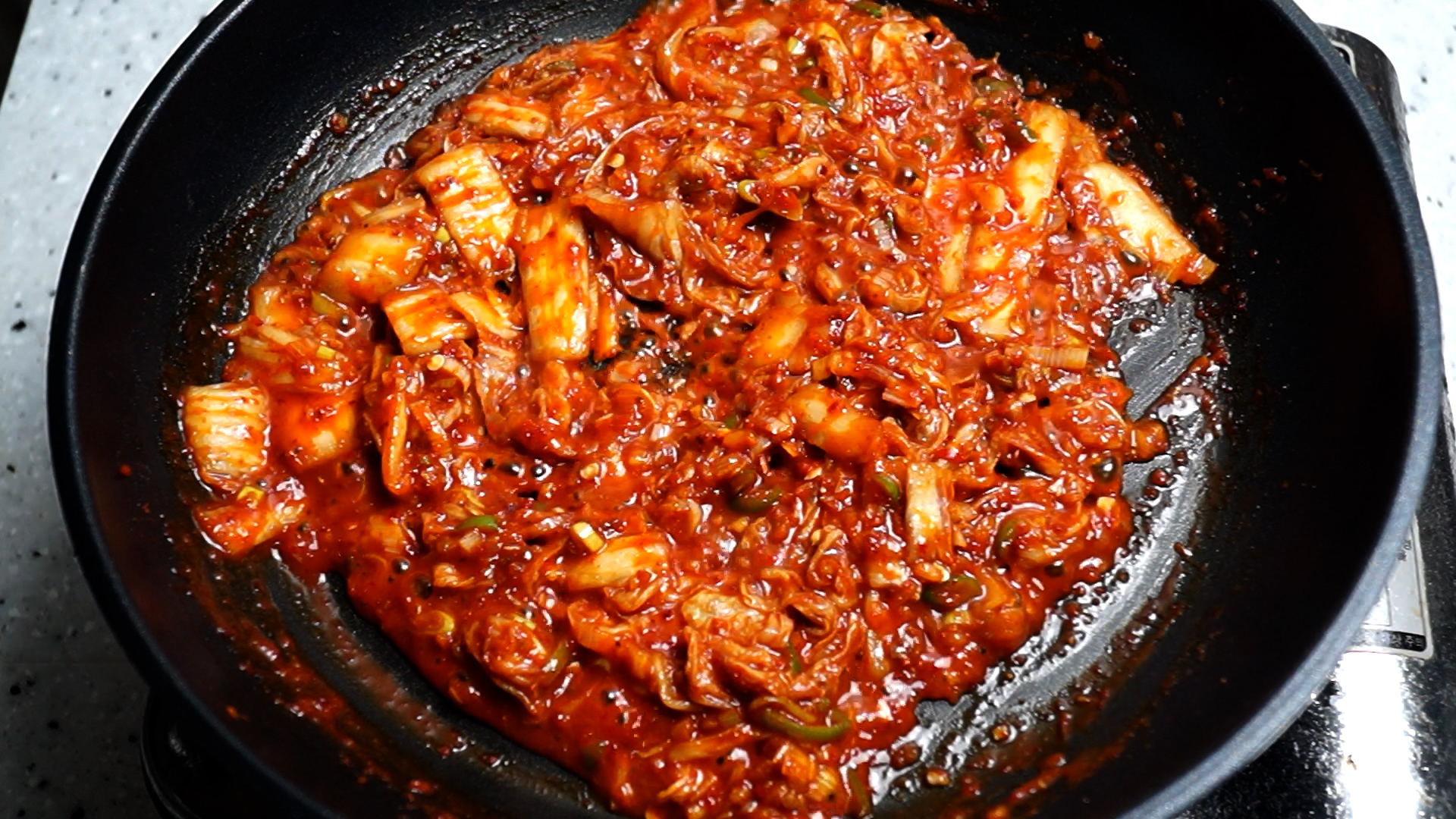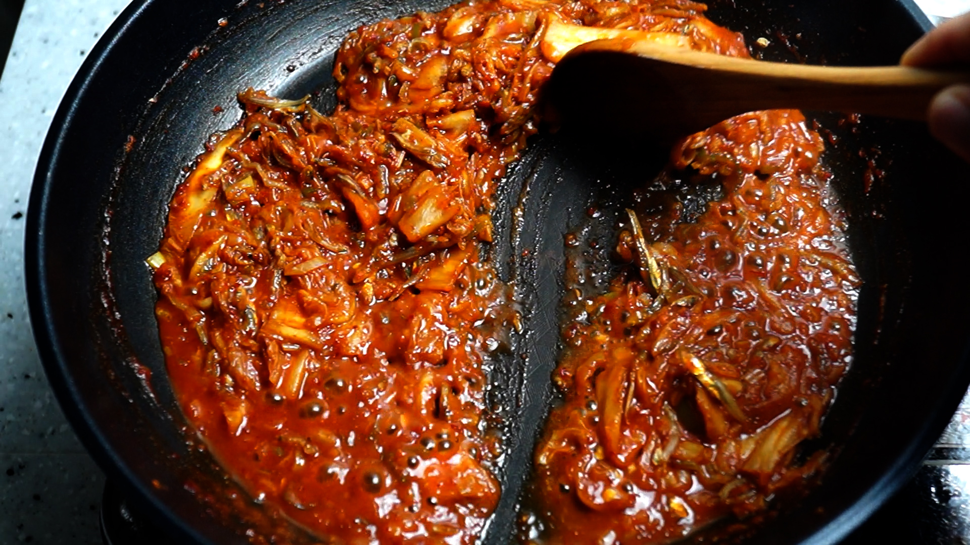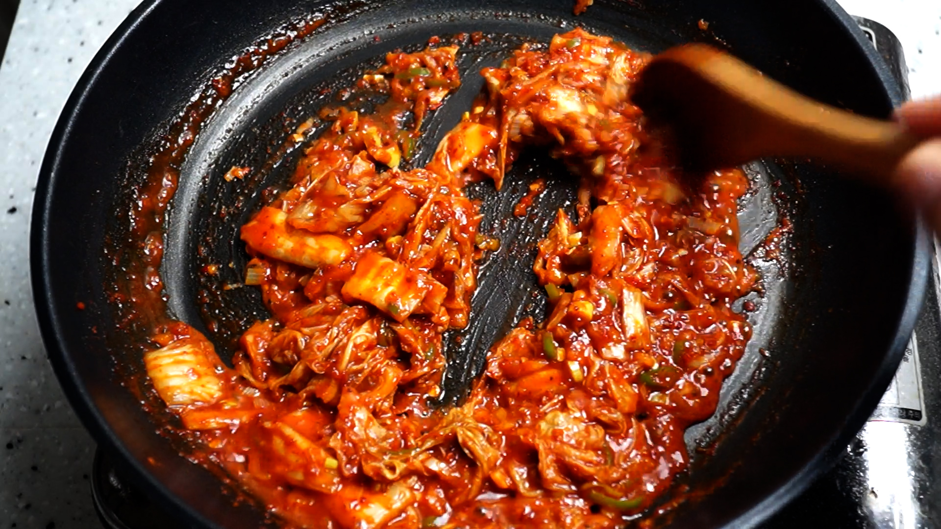 13. 중불 유지하고 2~3분 천천히 볶아주세요.