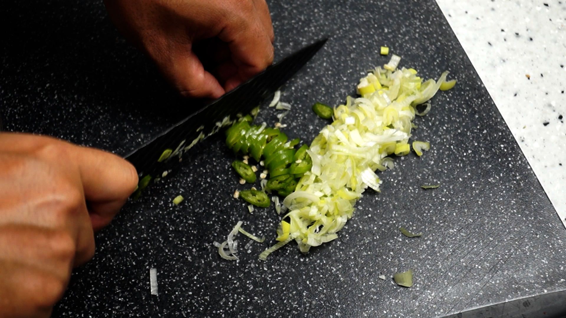 1. 대파를 흰대 위주로 3큰술 다져주세요.