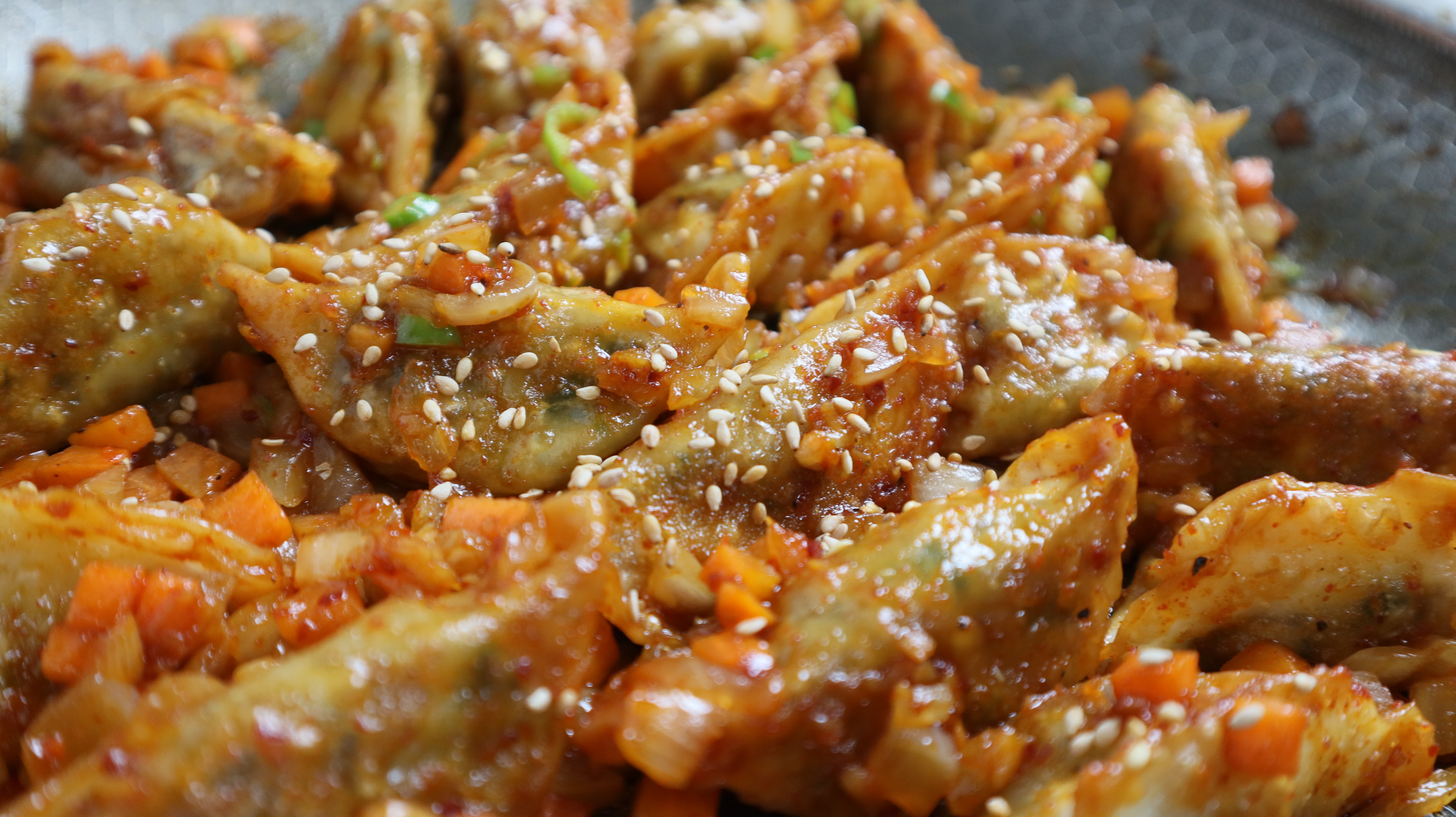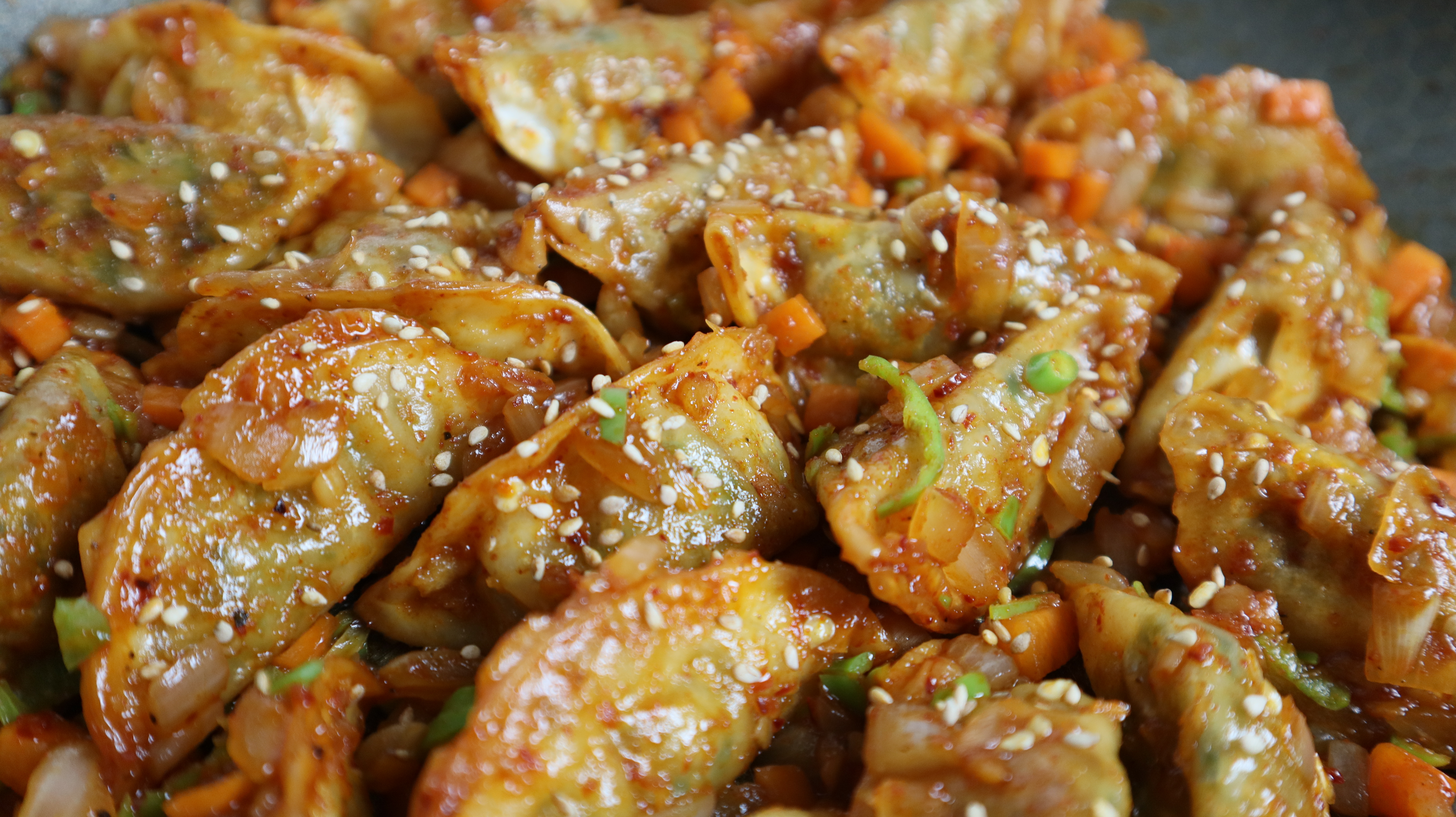 새콤달콤 소스에 볶아낸 만두가 정말 일품이랍니다