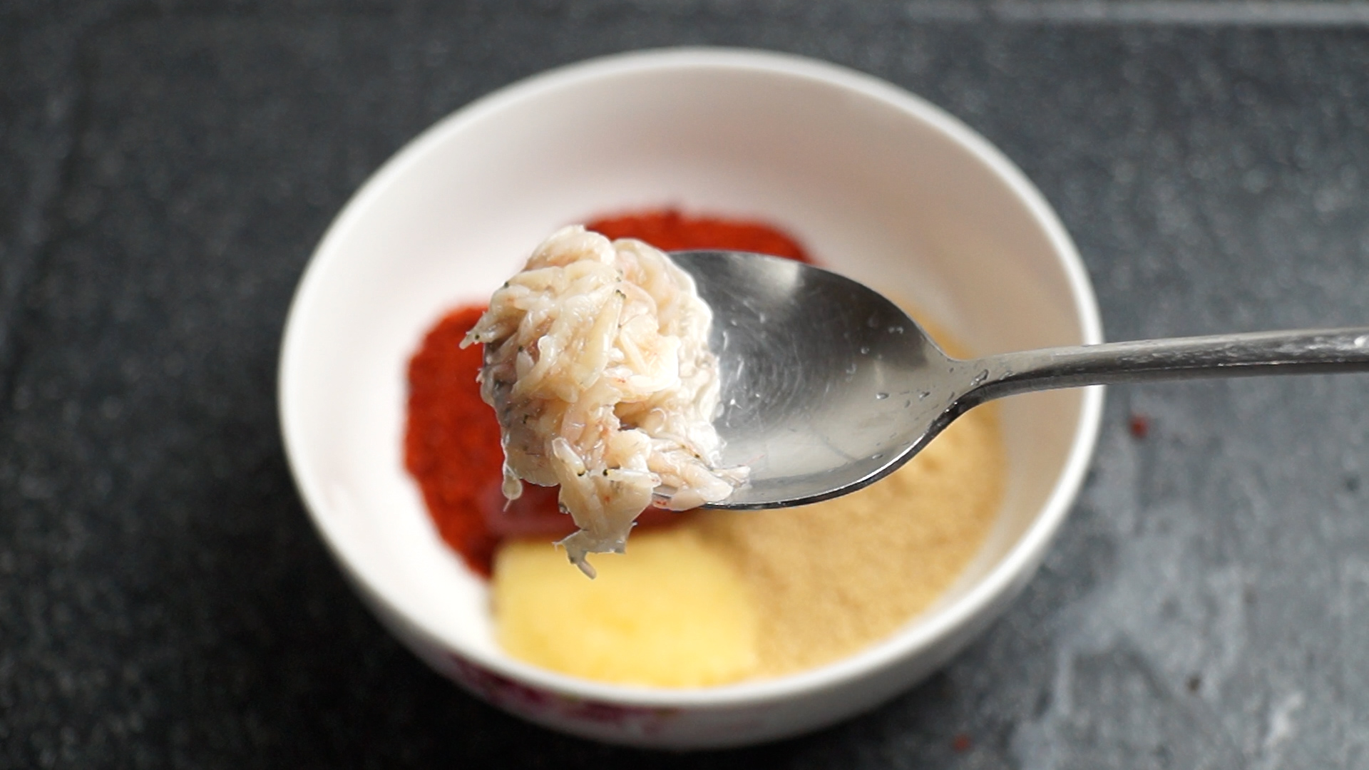 7. 감칠맛 나는 짠맛이 일품인 새우젓을 건더기만 넣어주세요.