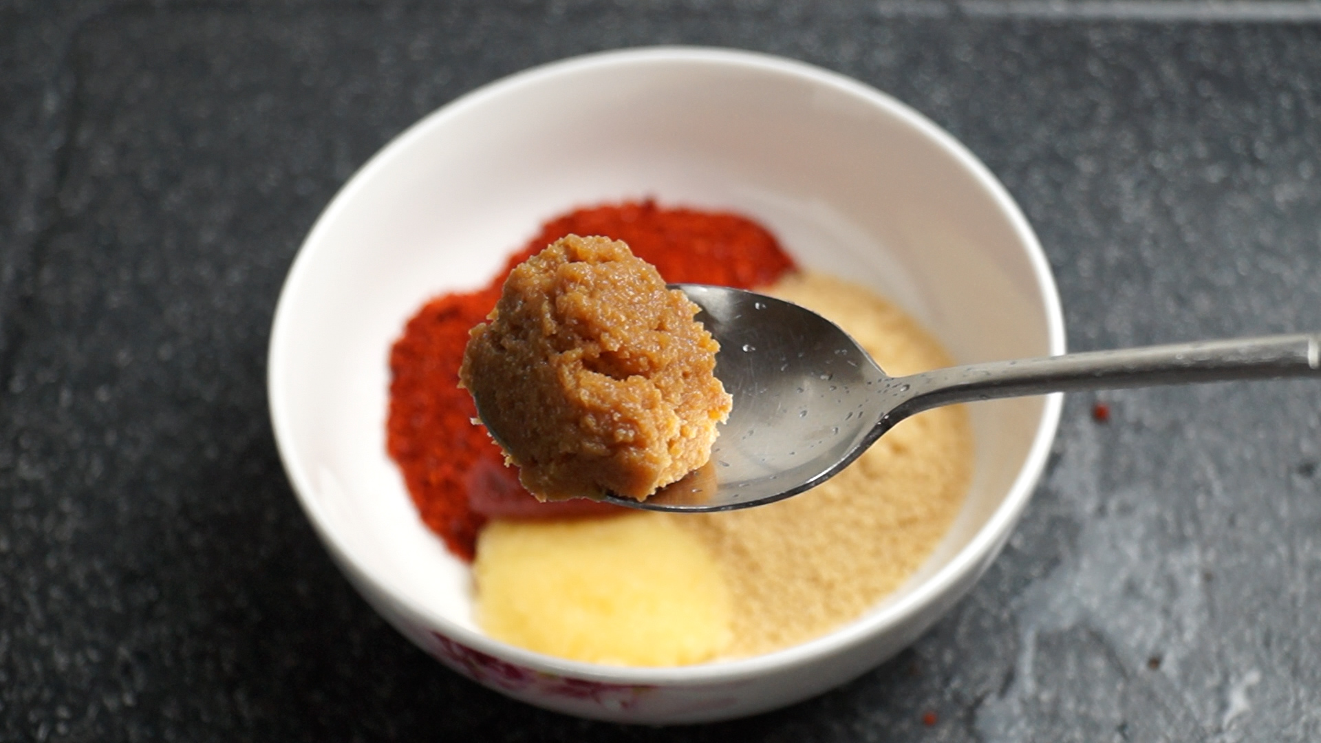 5. 두루치기 할때 같이 넣어주면 궁합이 좋은 고추장과 된장을 1:1 로 넣어주세요. 고추장의 칼칼함 된장의 구수함이 더해지면 한층 두루치기가 맛있어집니다~