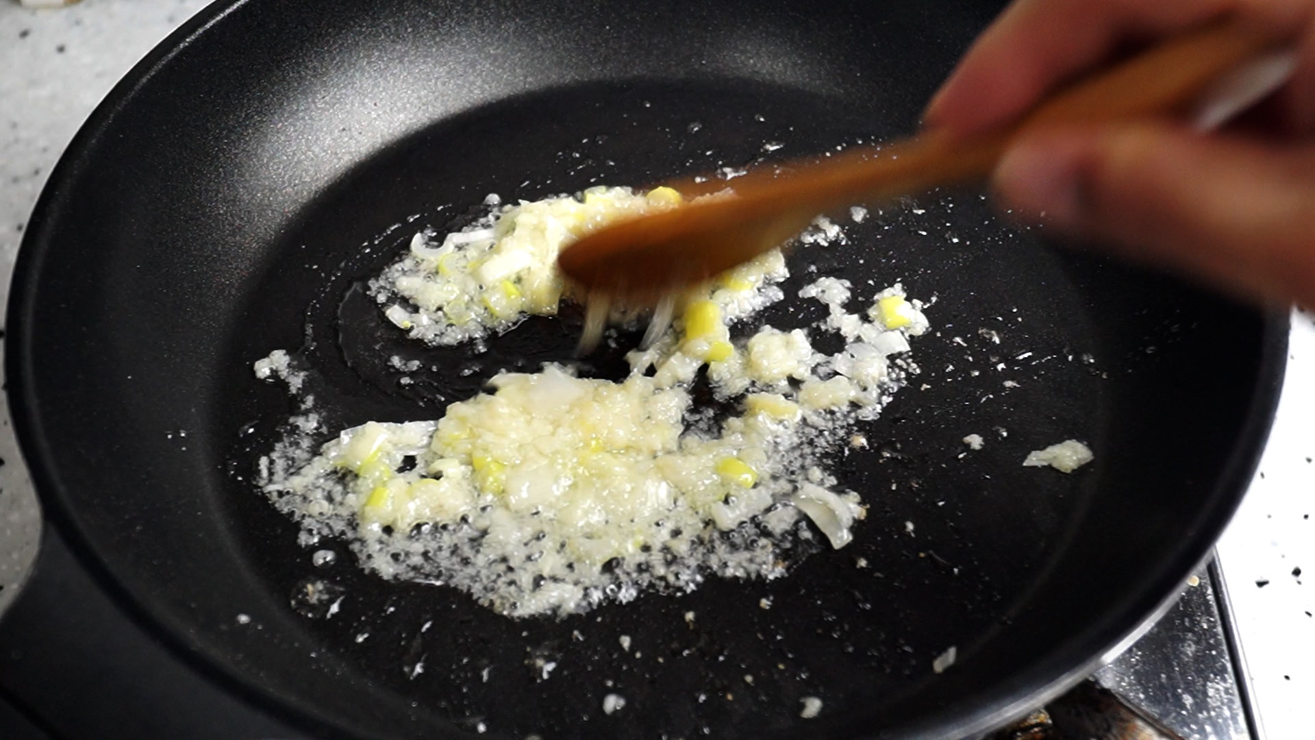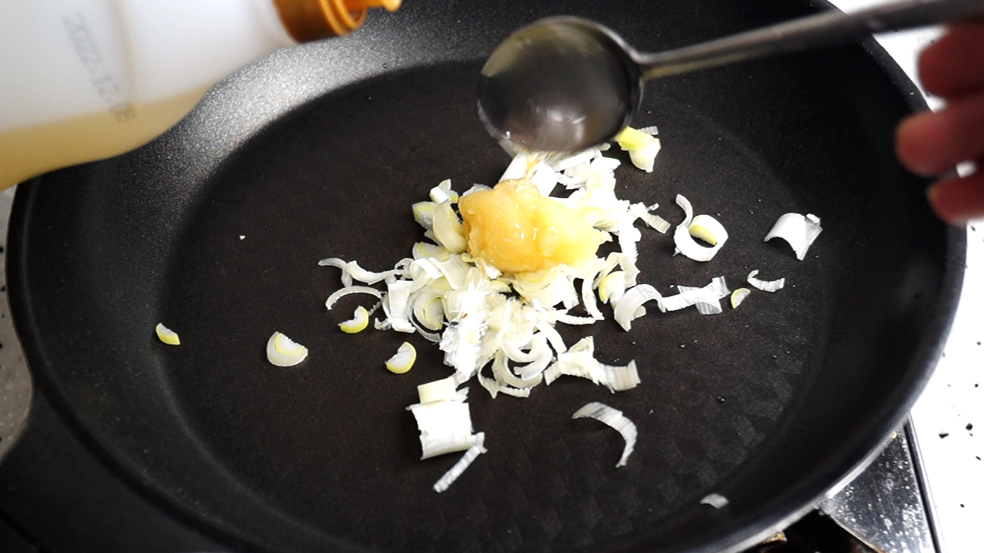 15. 팬에 대파와 마늘을 넣어주고 식용유도 넣어주세요.