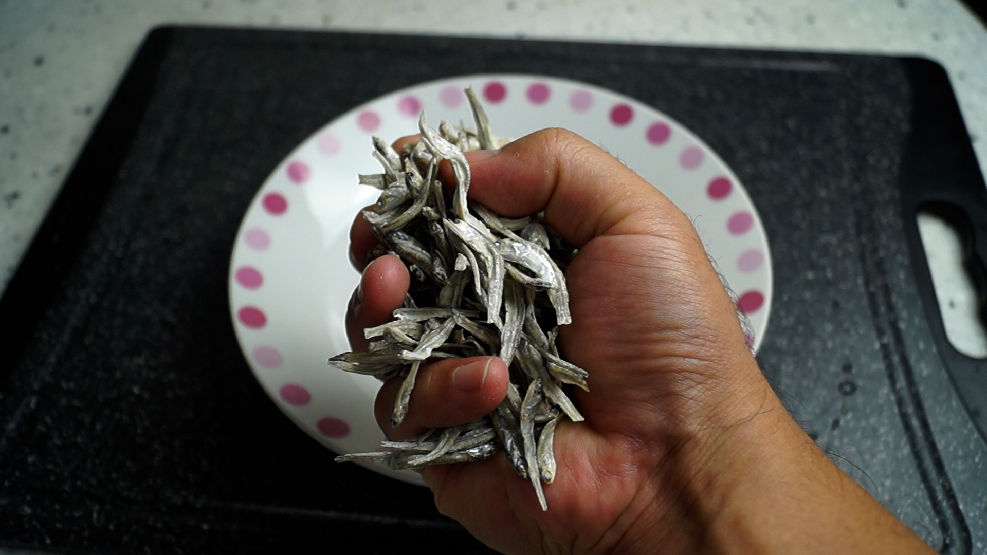14. 약불로 예열한 팬에 멸치를 3분 정도 볶아서 잡내를 날리고 수분도 살짝 날려주세요.