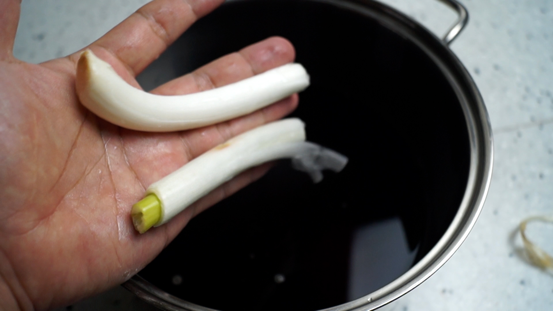 18. 대파를 흰대 위주로 굵은거 한뼘 크기 또는 얇은거 한뼘 크기 2조각을 넣어주세요.