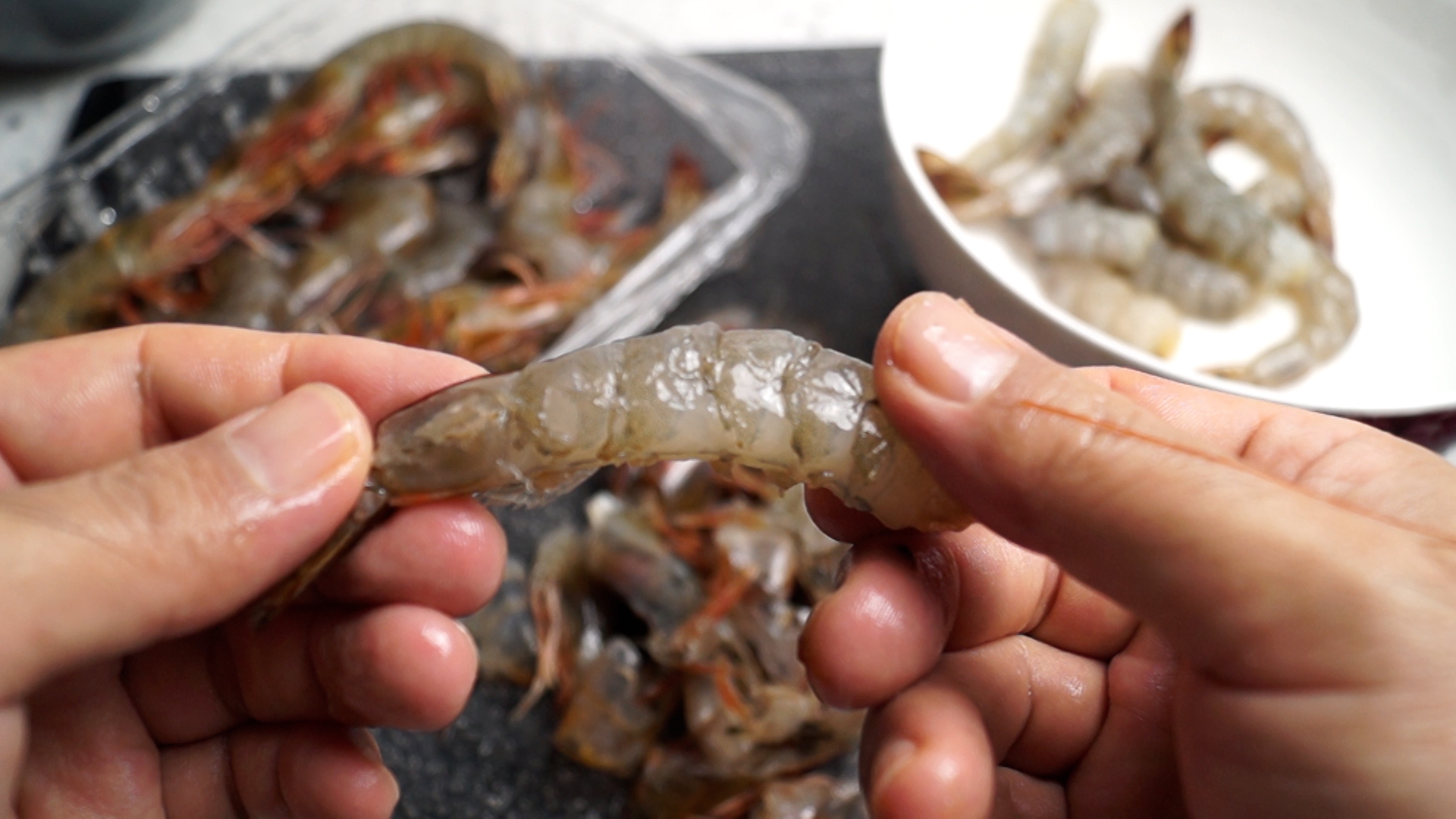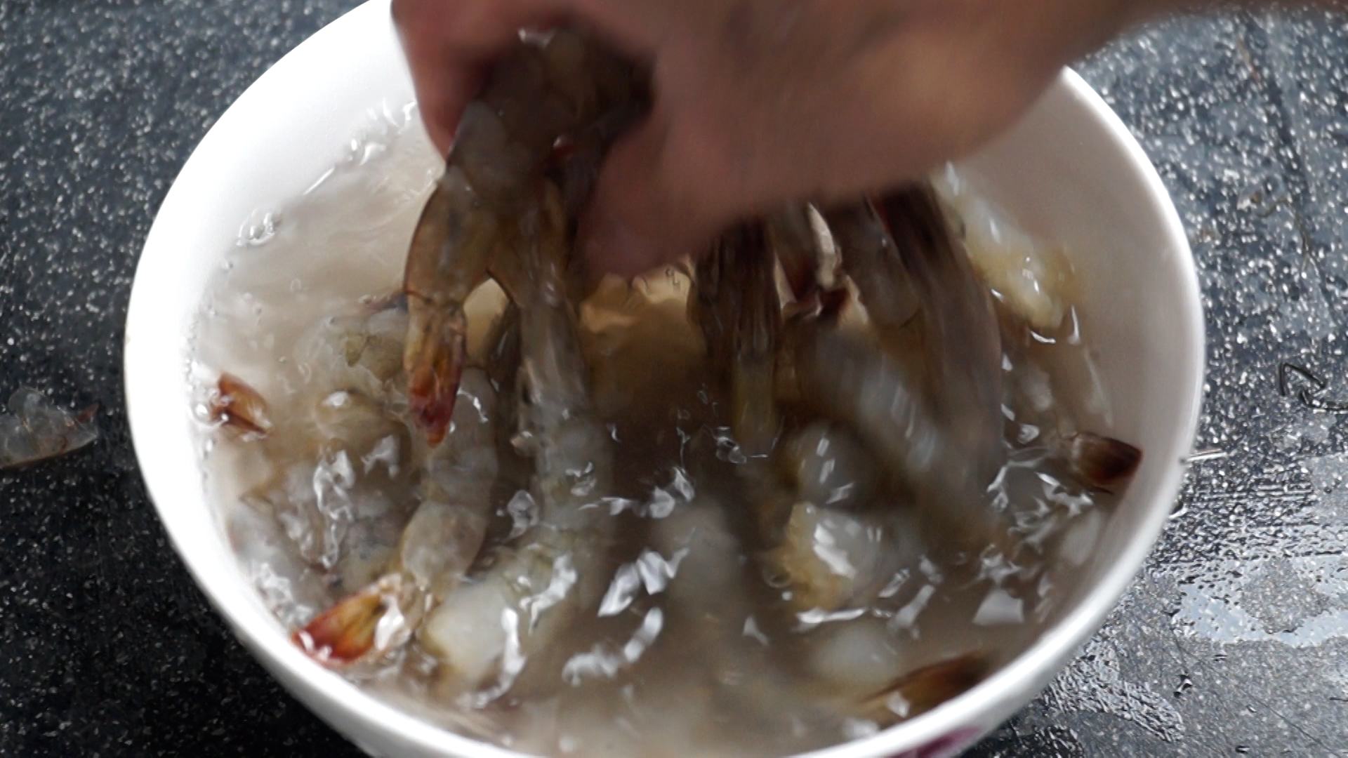 13. 껍질 벗긴 새우는 찬물에 가볍게 한번만 헹궈주세요.