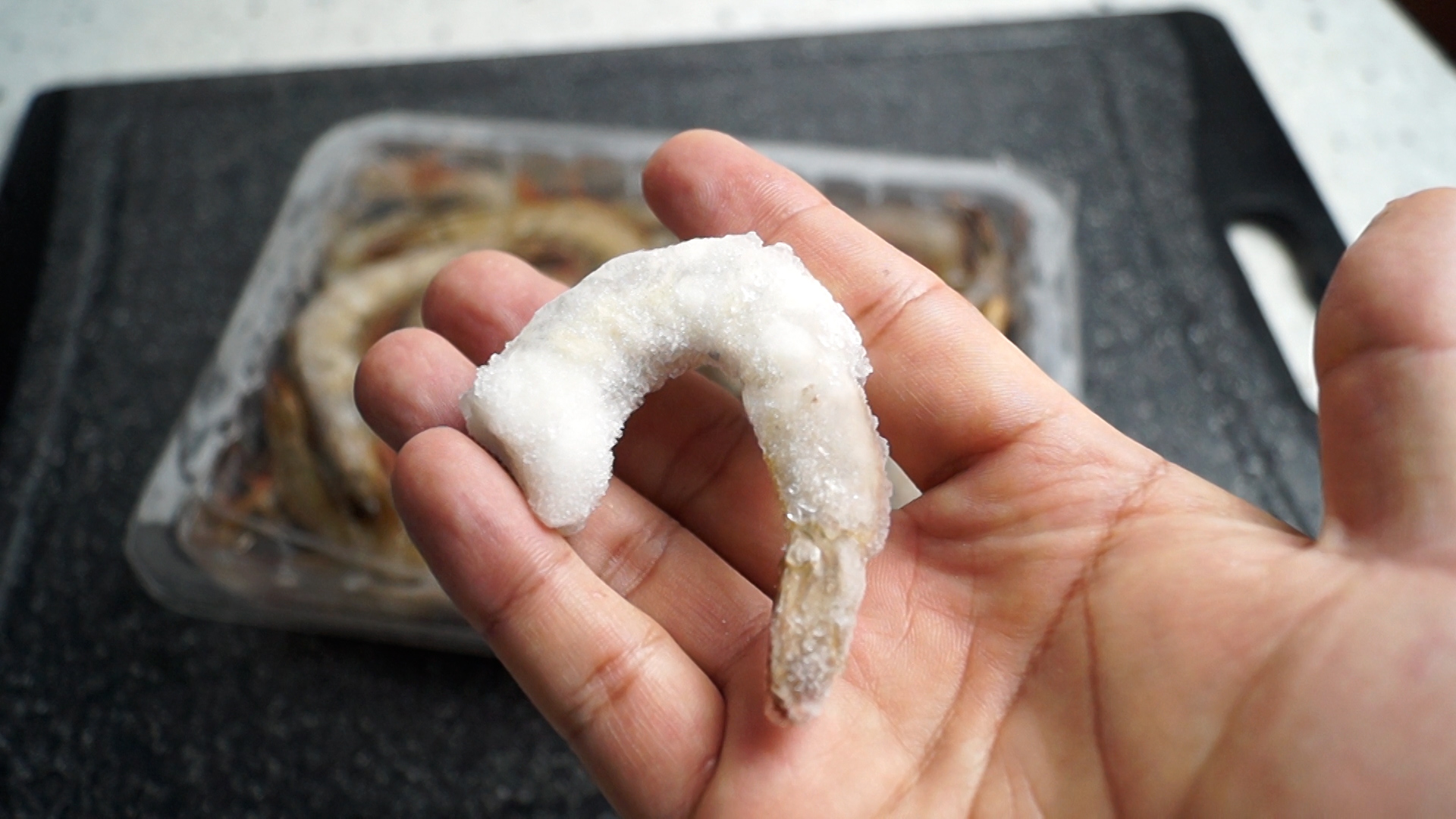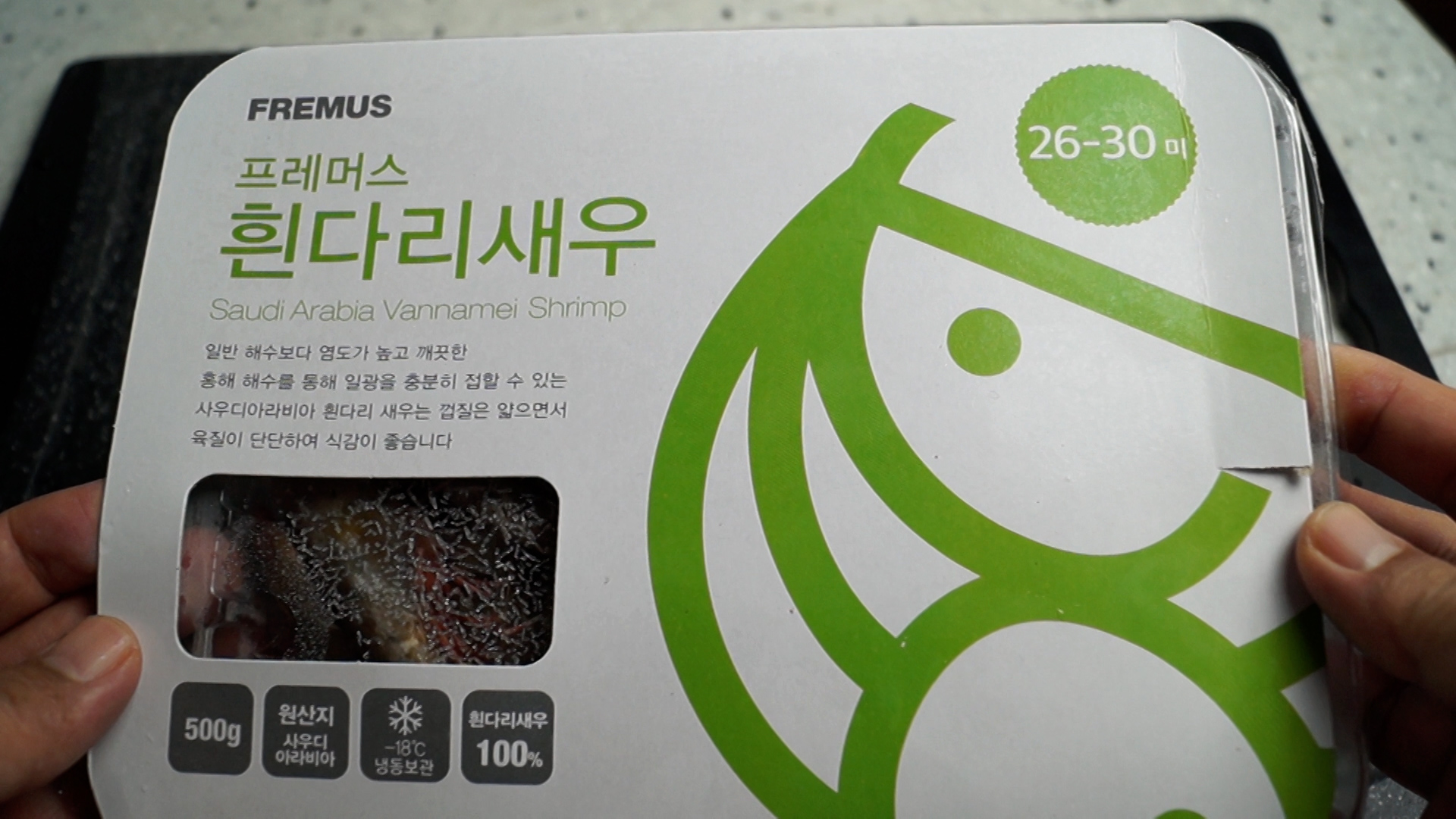 6. 새우는 상온 해동이 아니라 찬물을 부어 20~30분 담궈 재빠르게 해동시켜주세요.