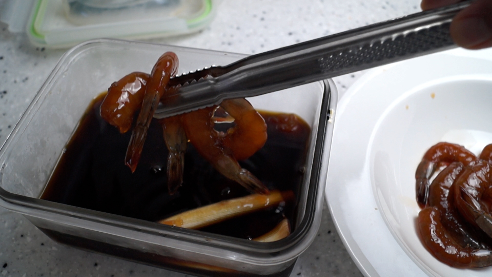 22. 냉장숙성시킨 새우를 건져내주세요.