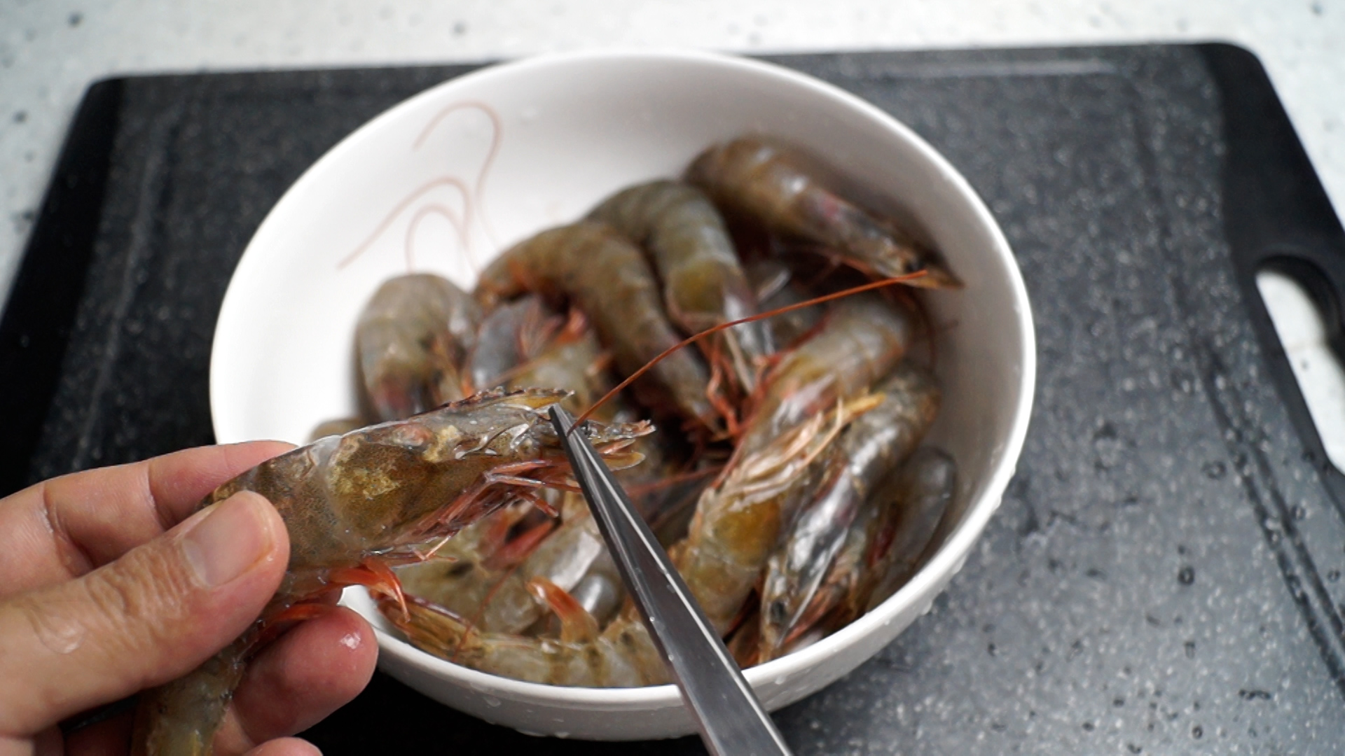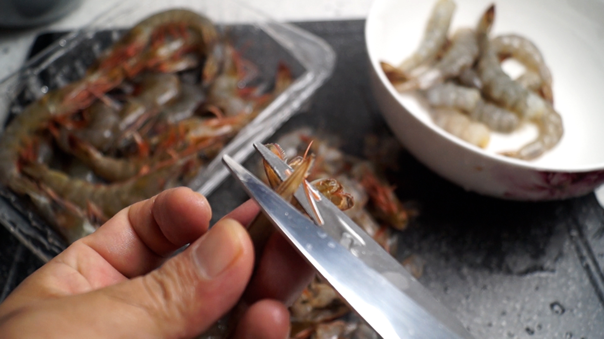 7. 새우 수염과 머리에 뾰족한 부분은 잘라버려주세요.
